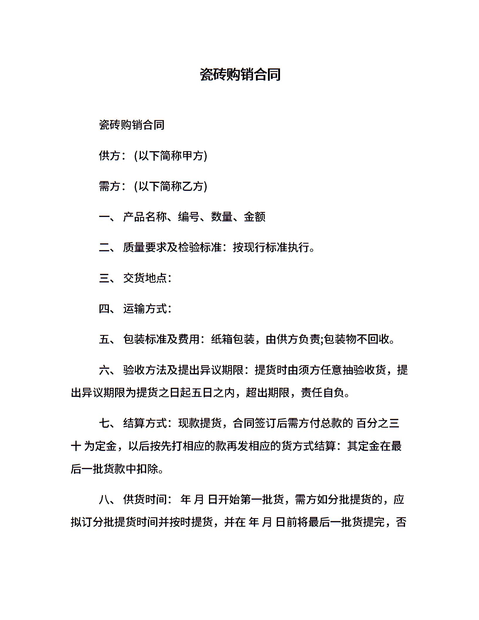瓷砖购销合同
