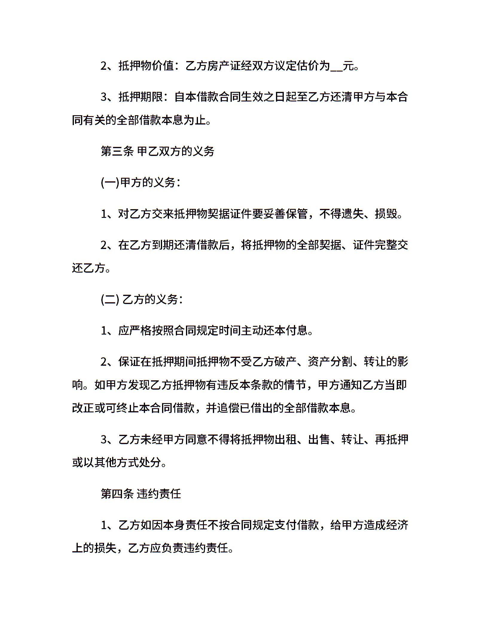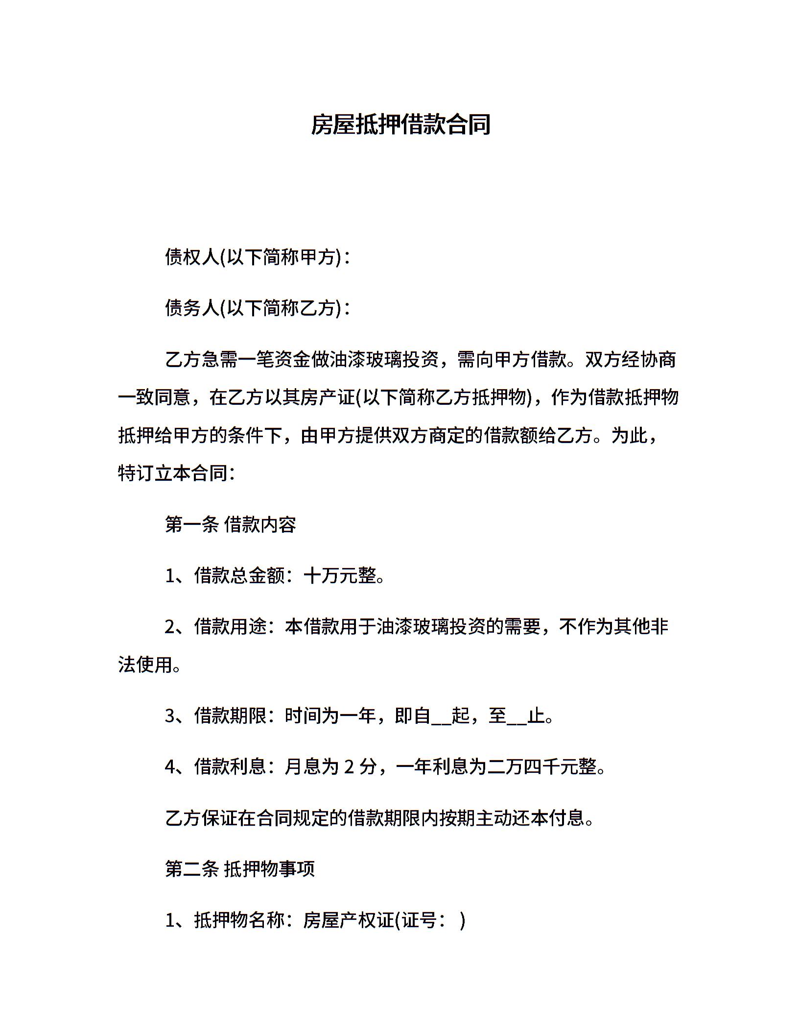 房屋抵押借款合同