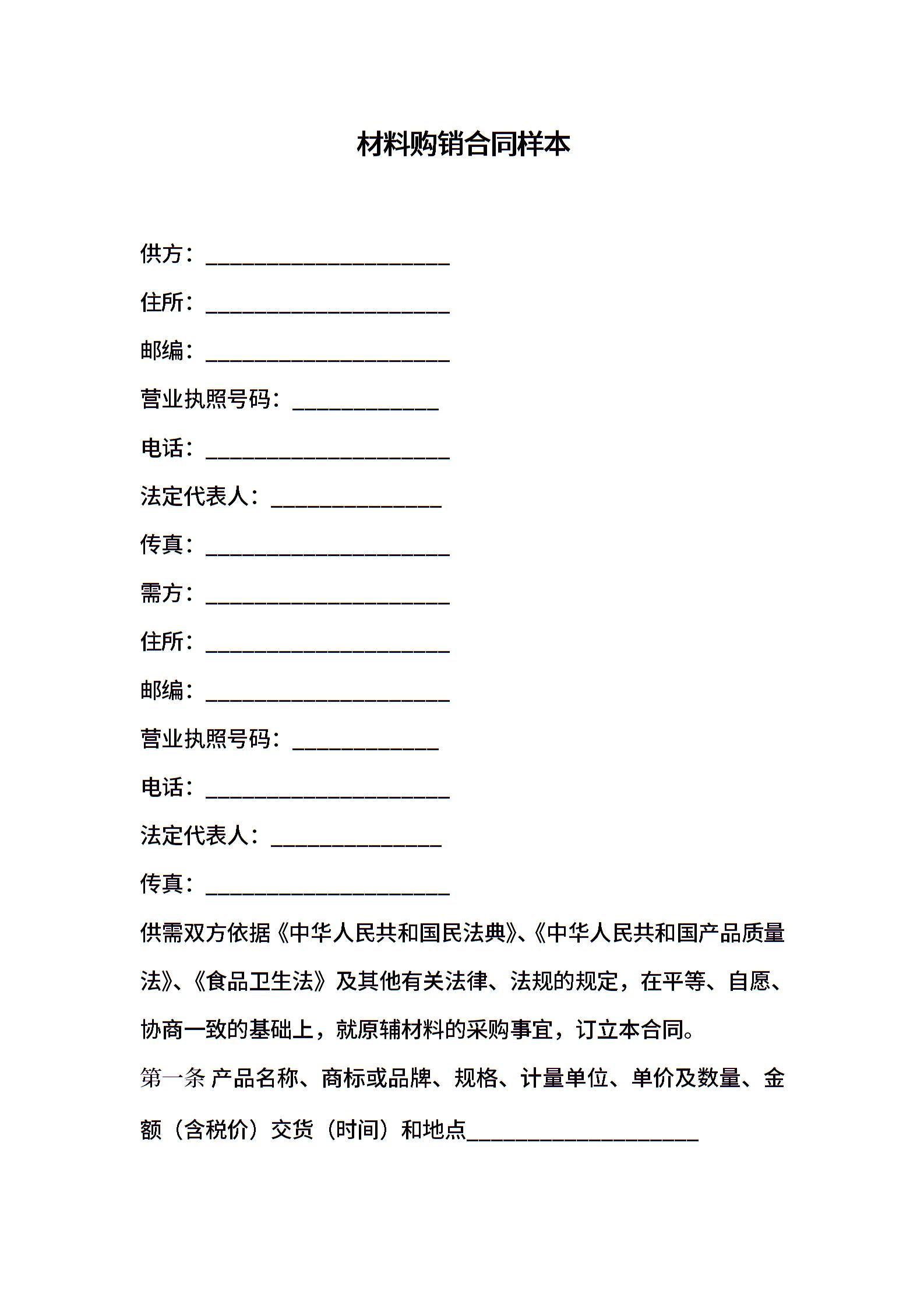 材料购销合同样本