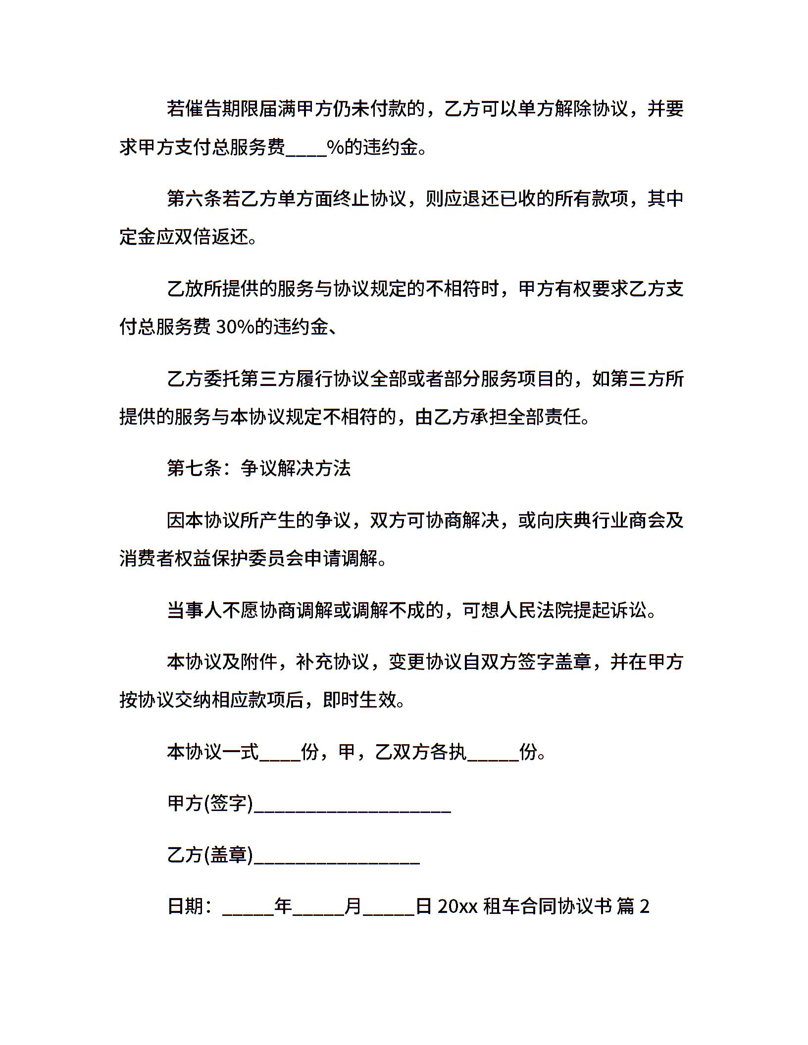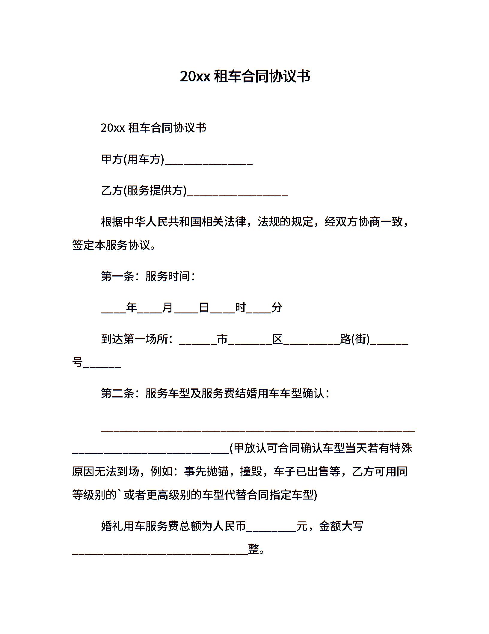 20xx租车合同协议书