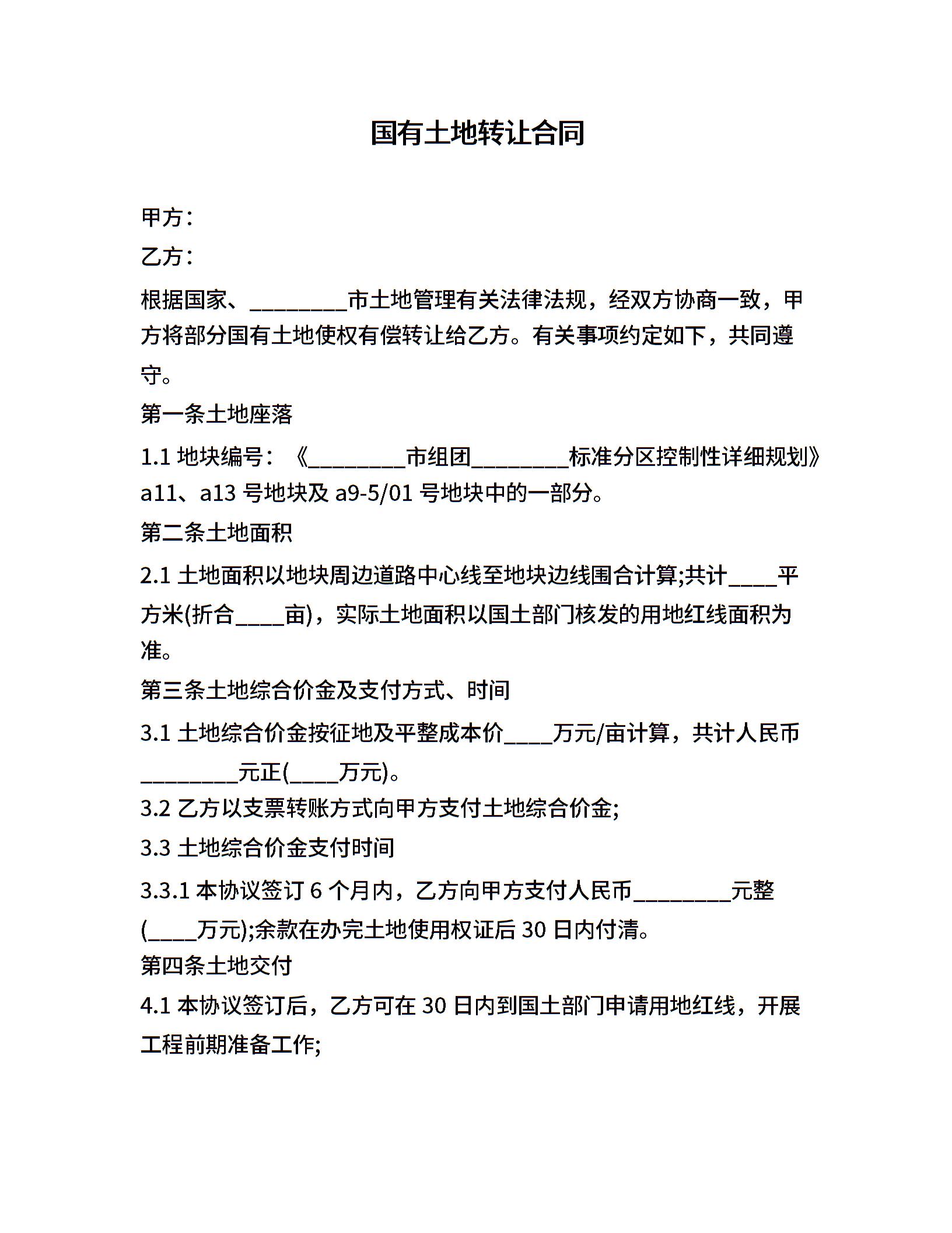 国有土地转让合同