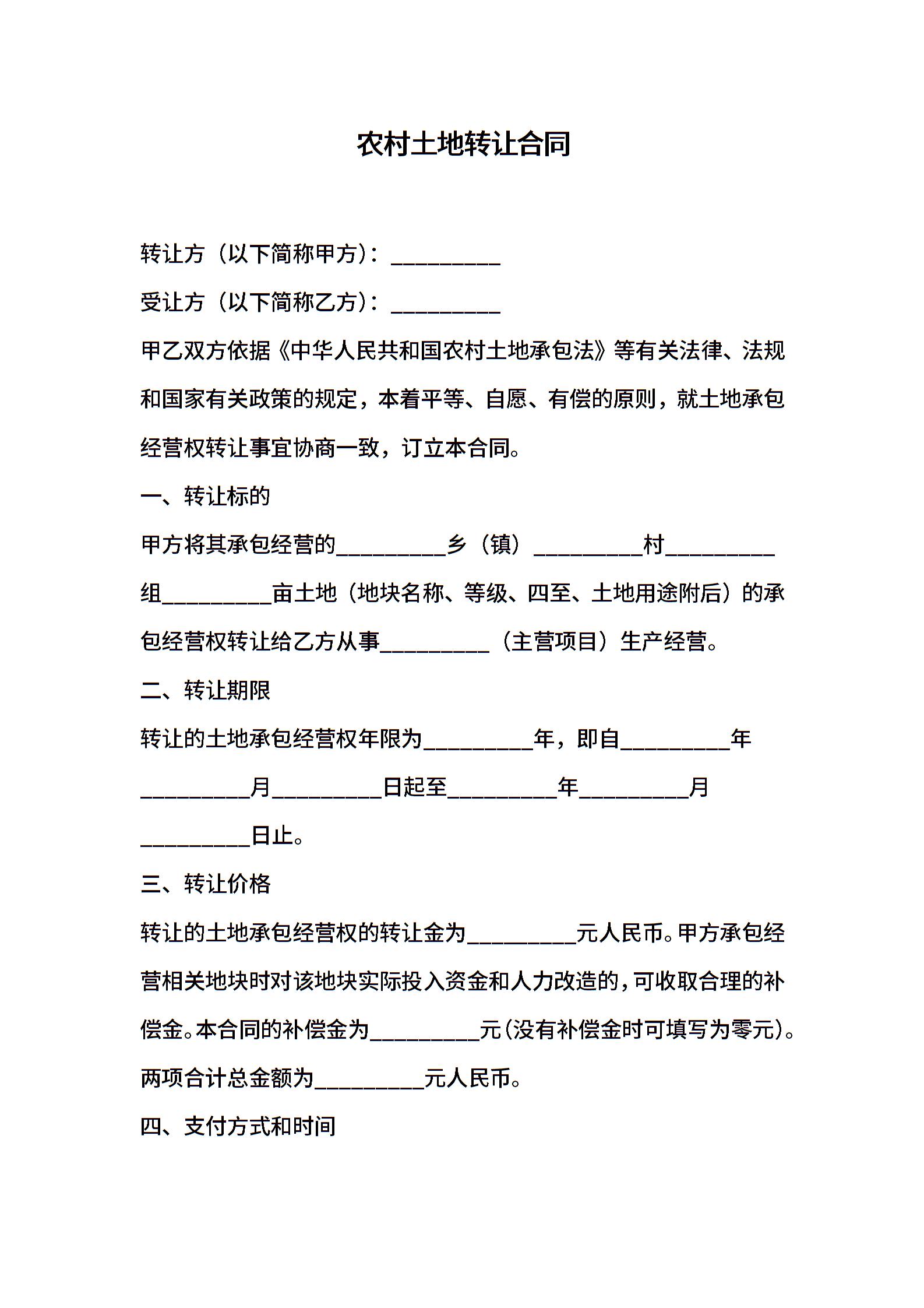 农村土地转让合同