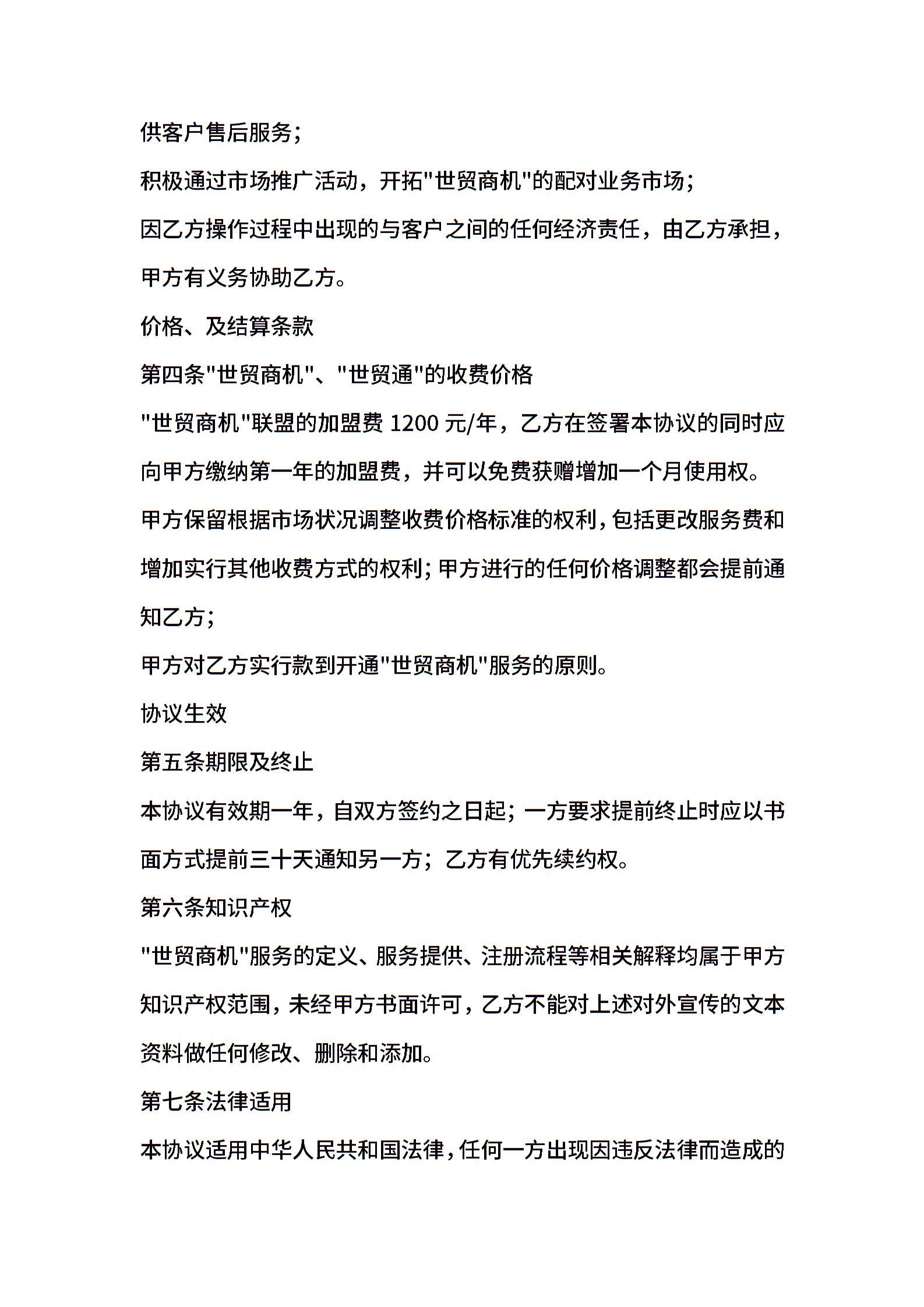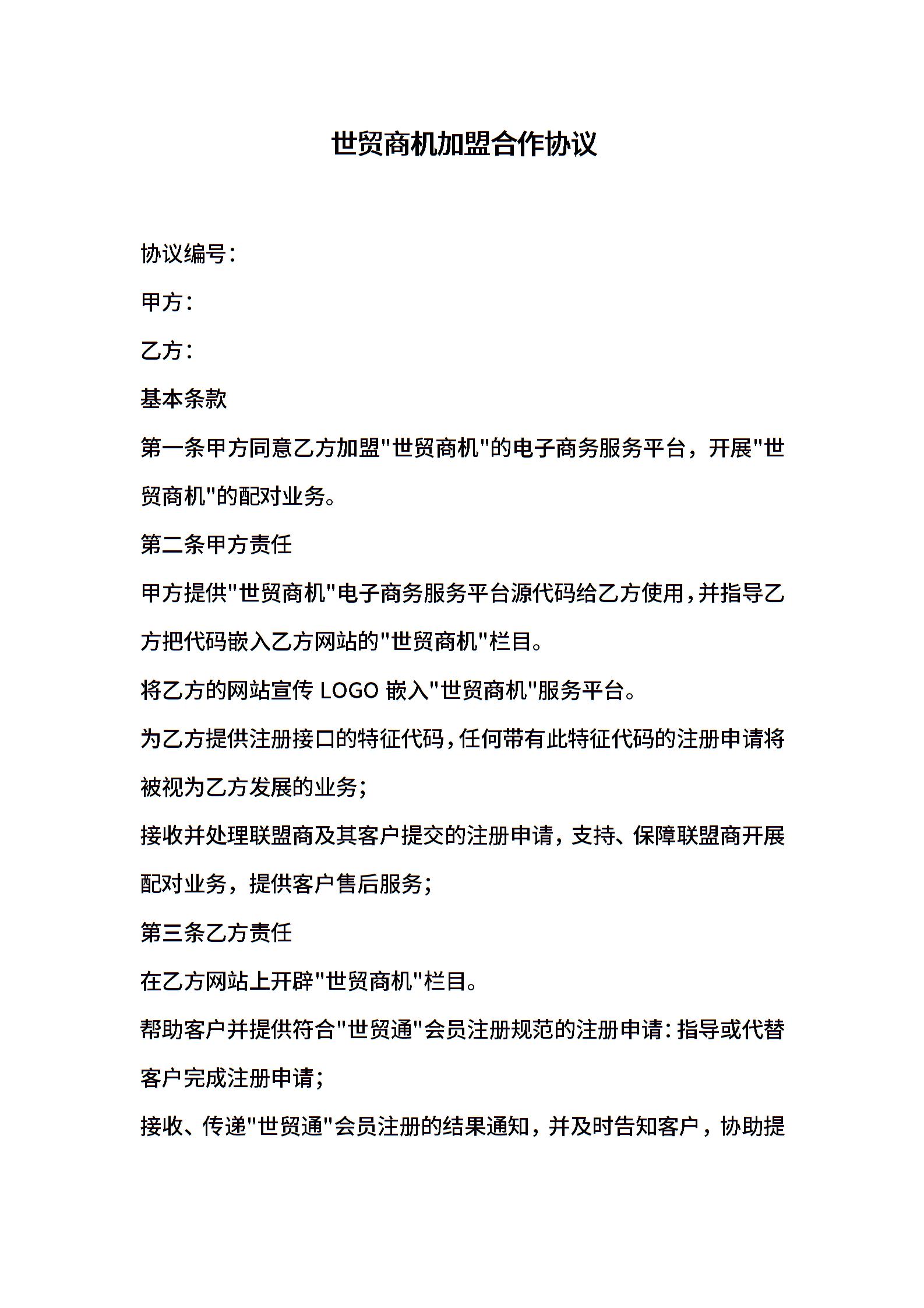 世贸商机加盟合作协议