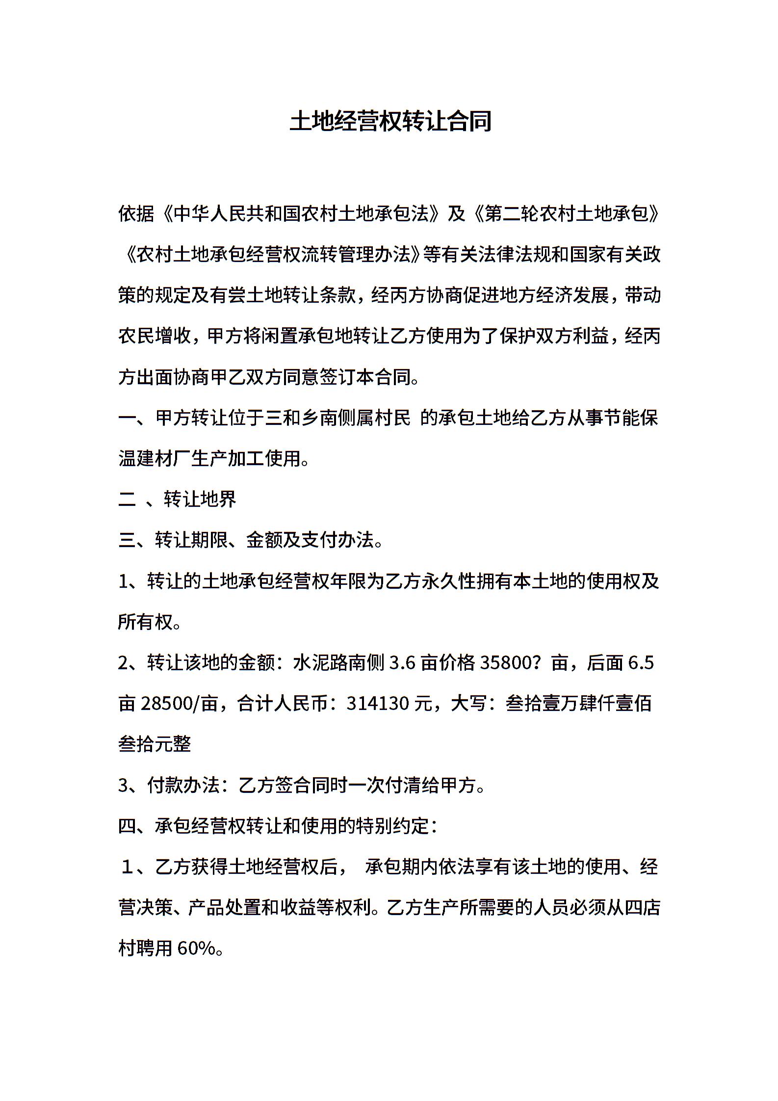 土地经营权转让合同
