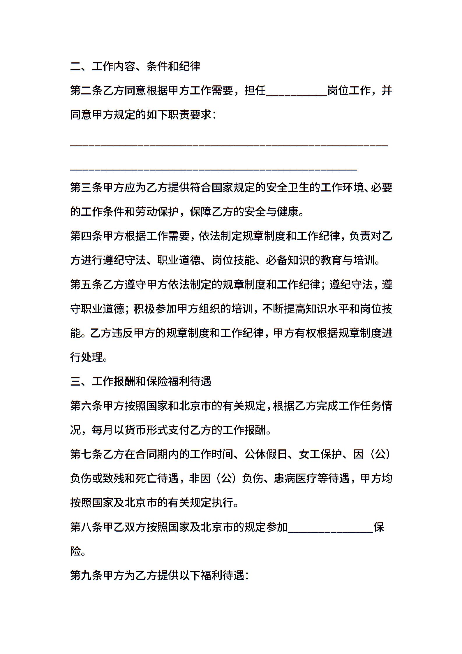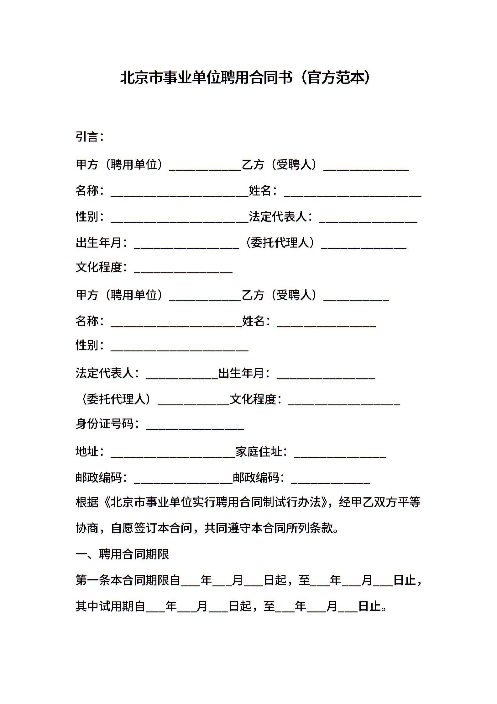 北京市事业单位聘用合同书(官方范本)