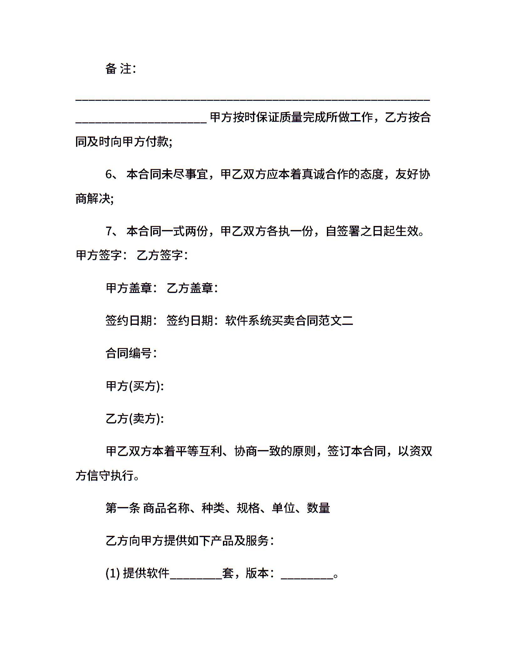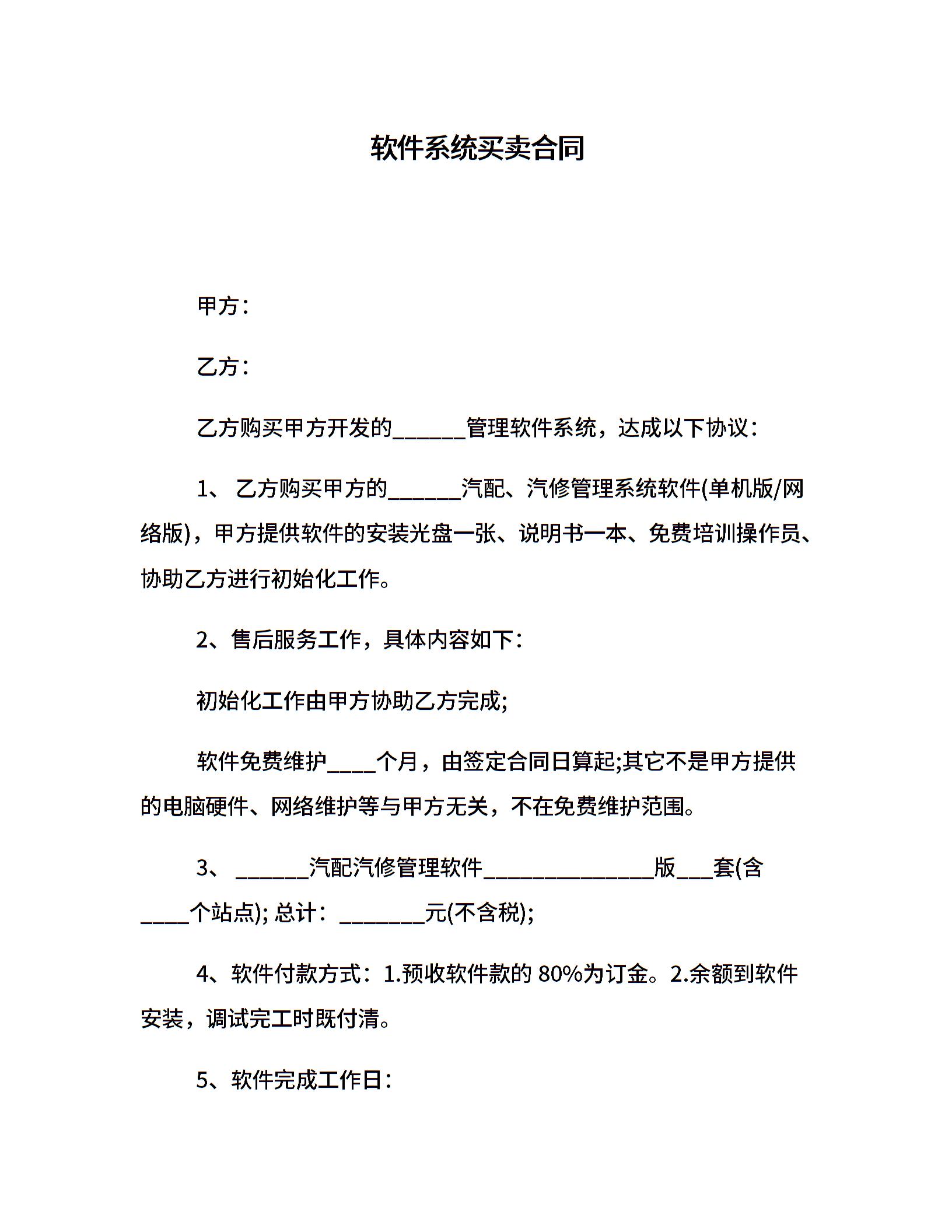 软件系统买卖合同
