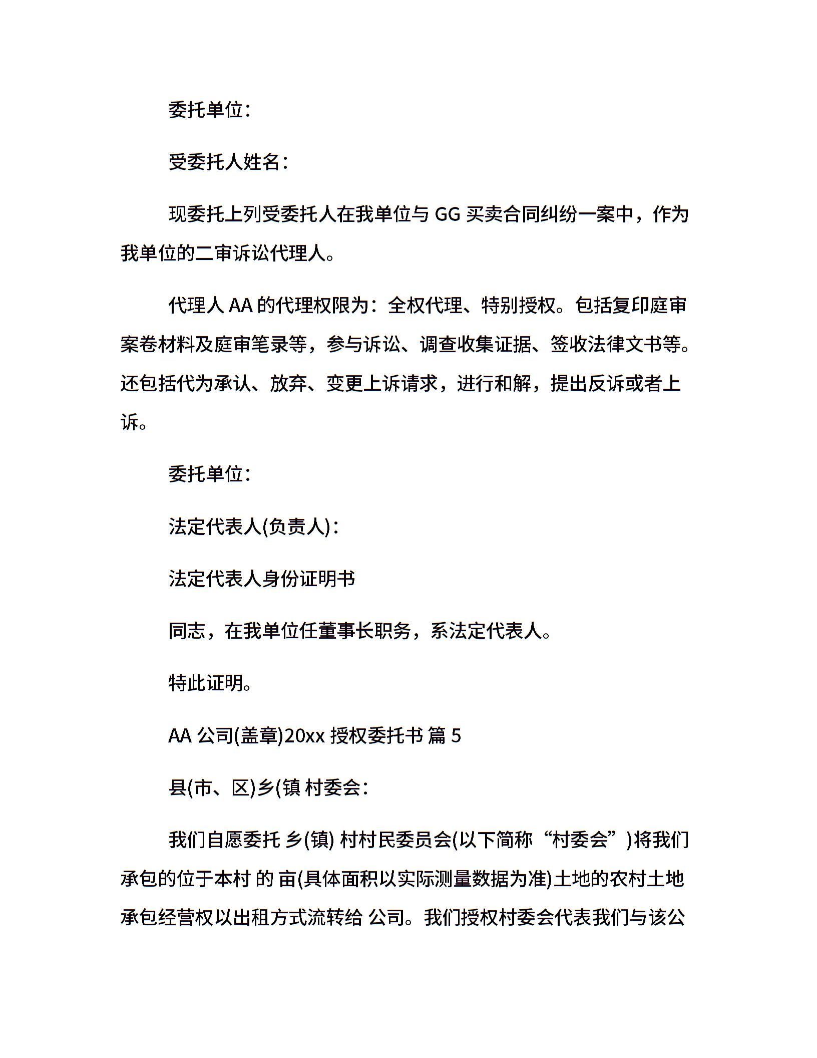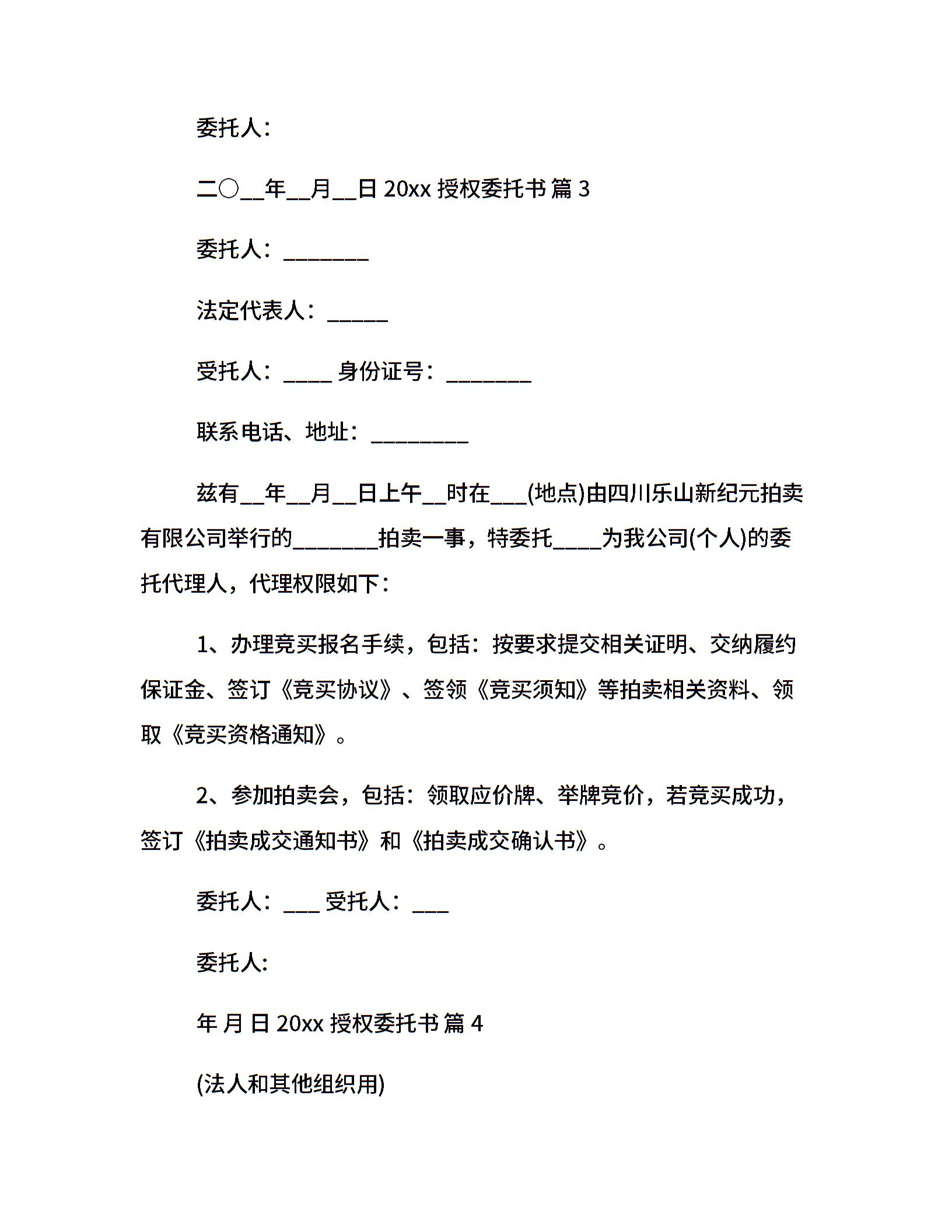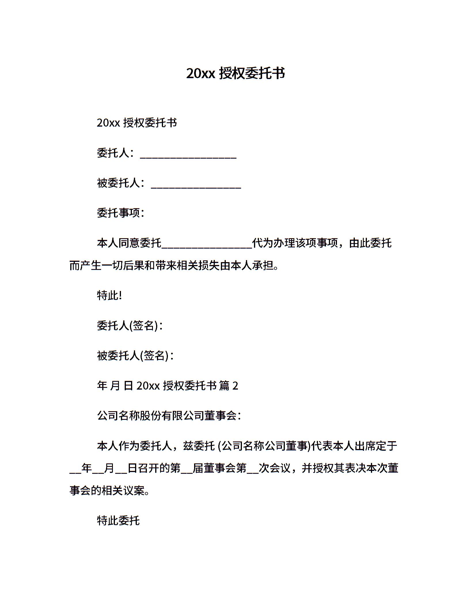 20xx授权委托书