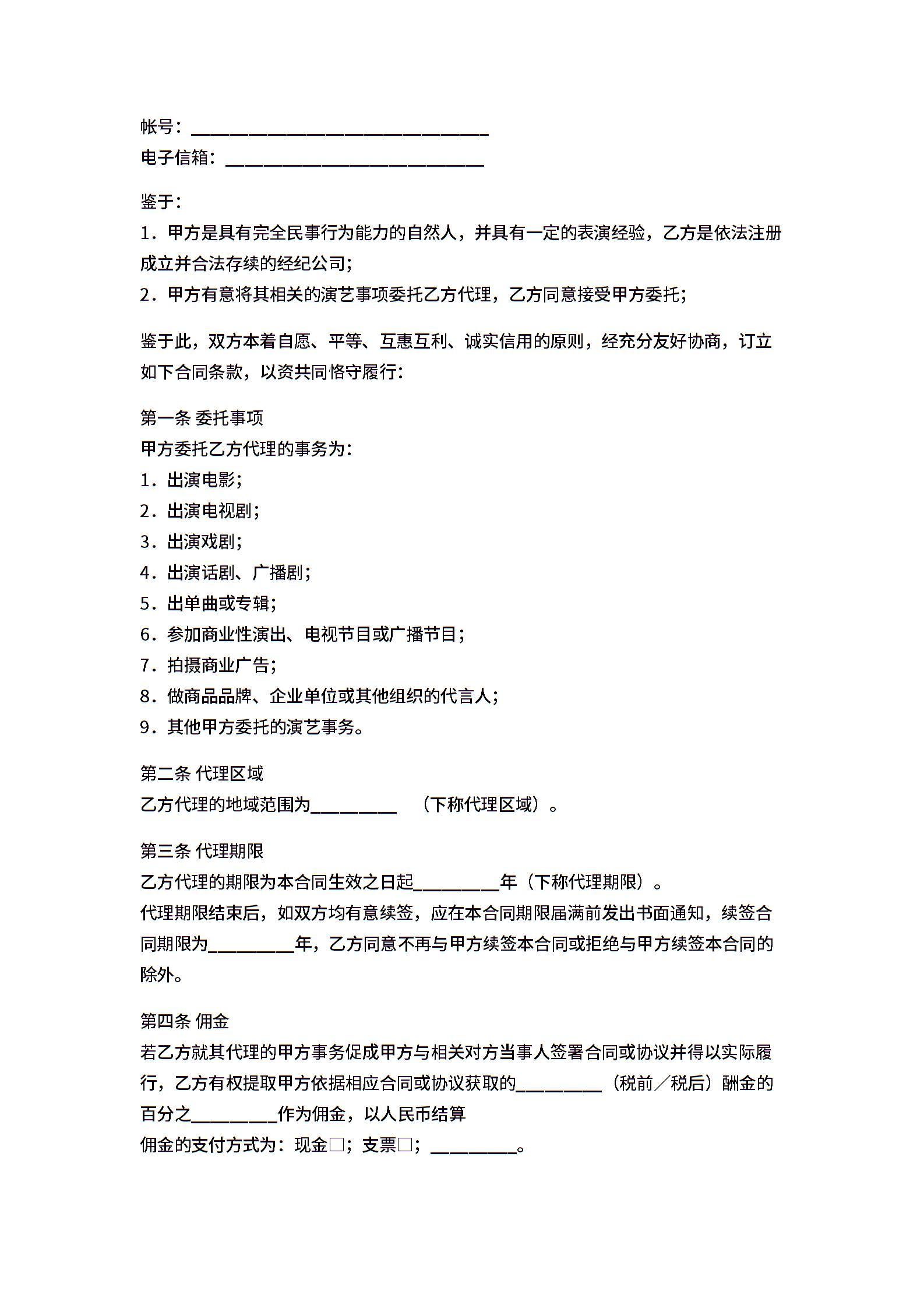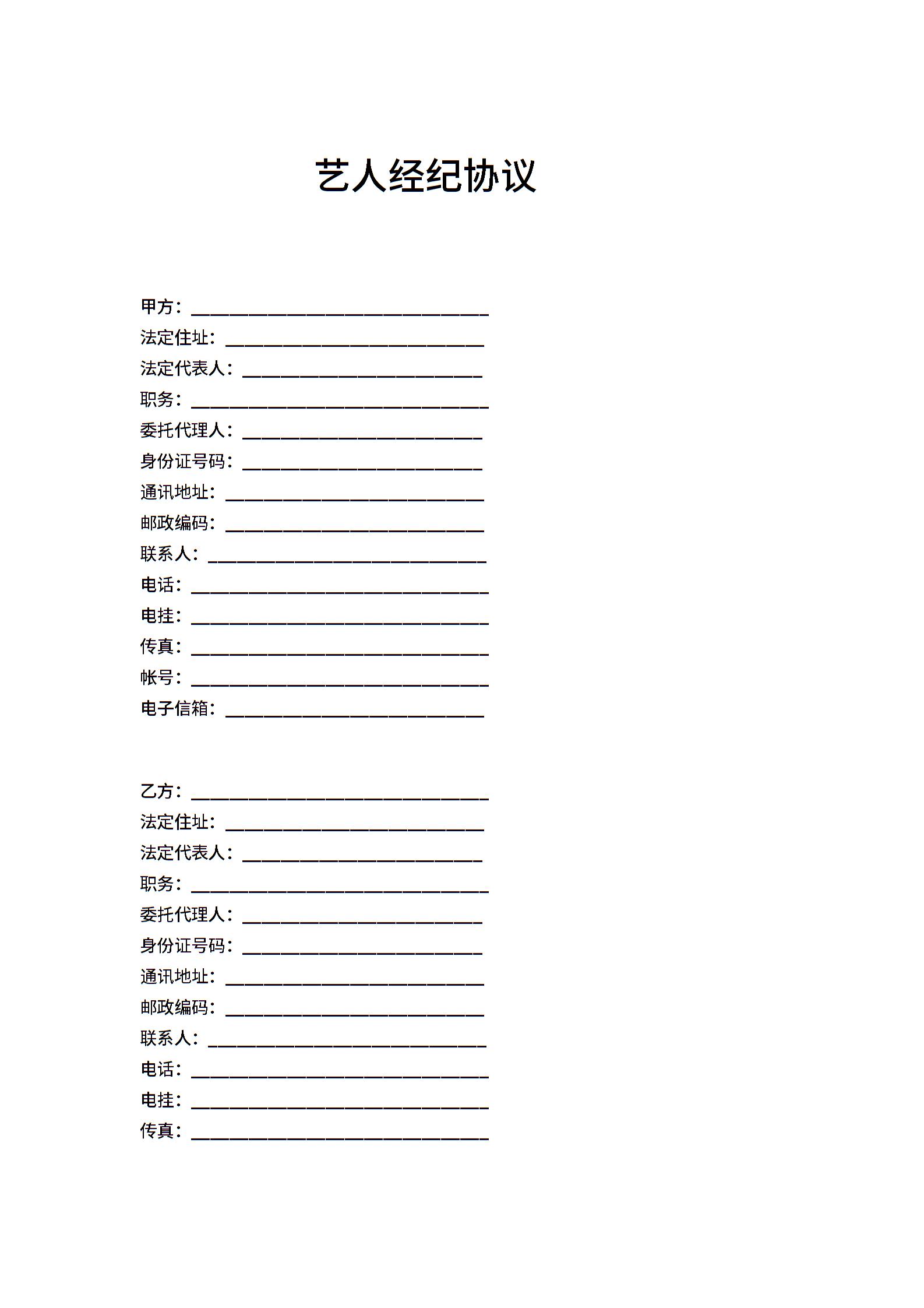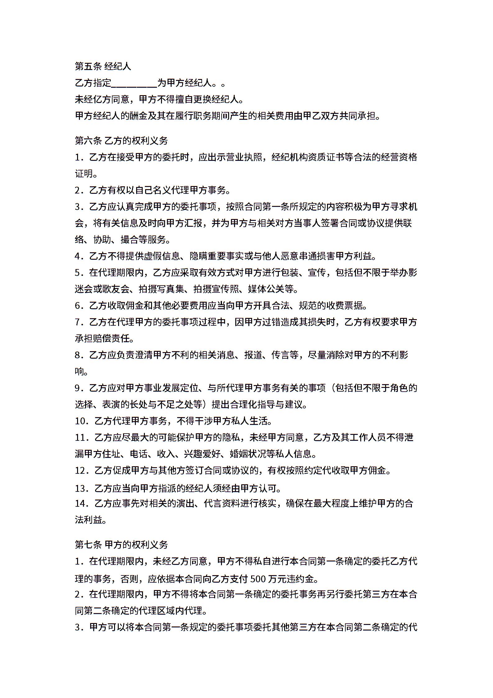 艺人与经纪公司的签约合同