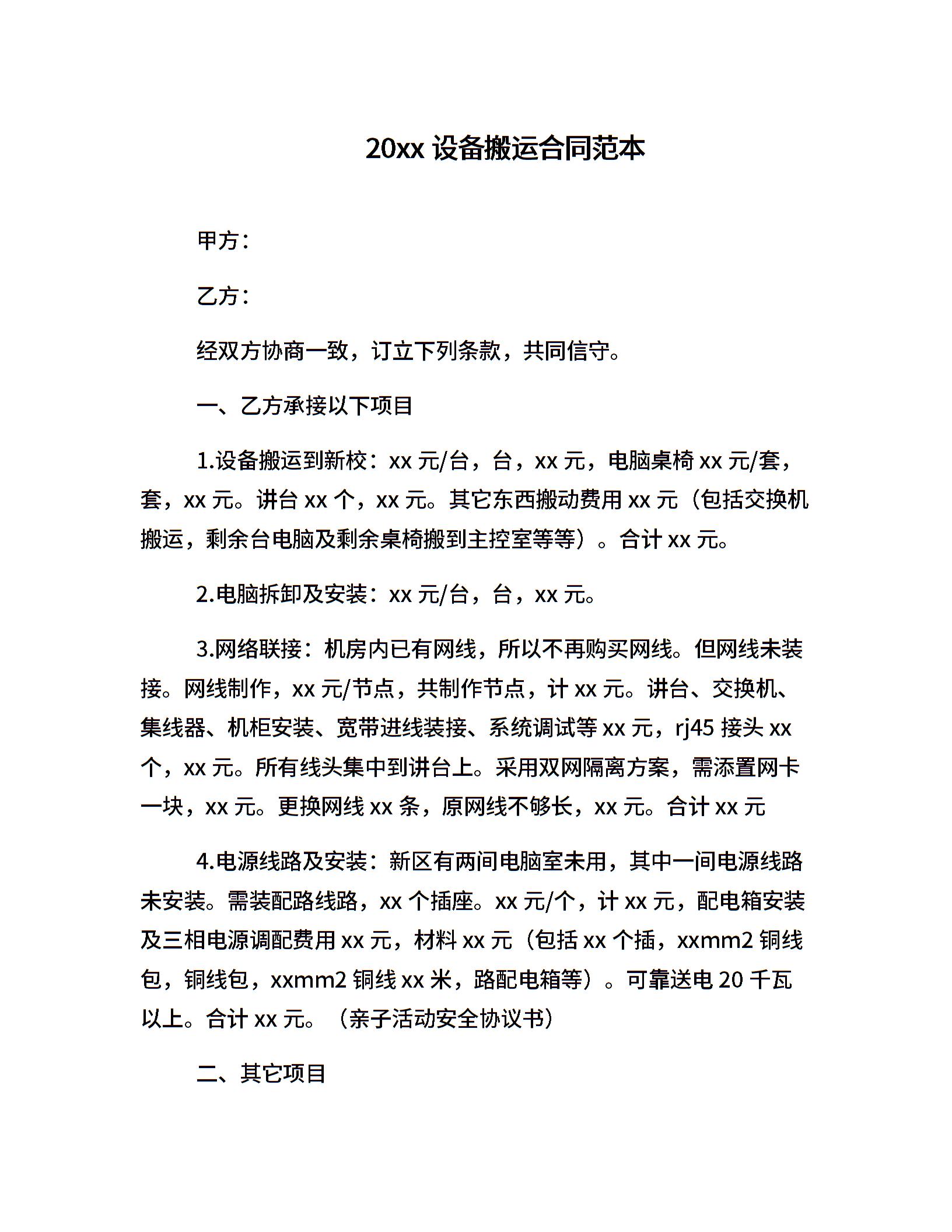 20xx设备搬运合同范本