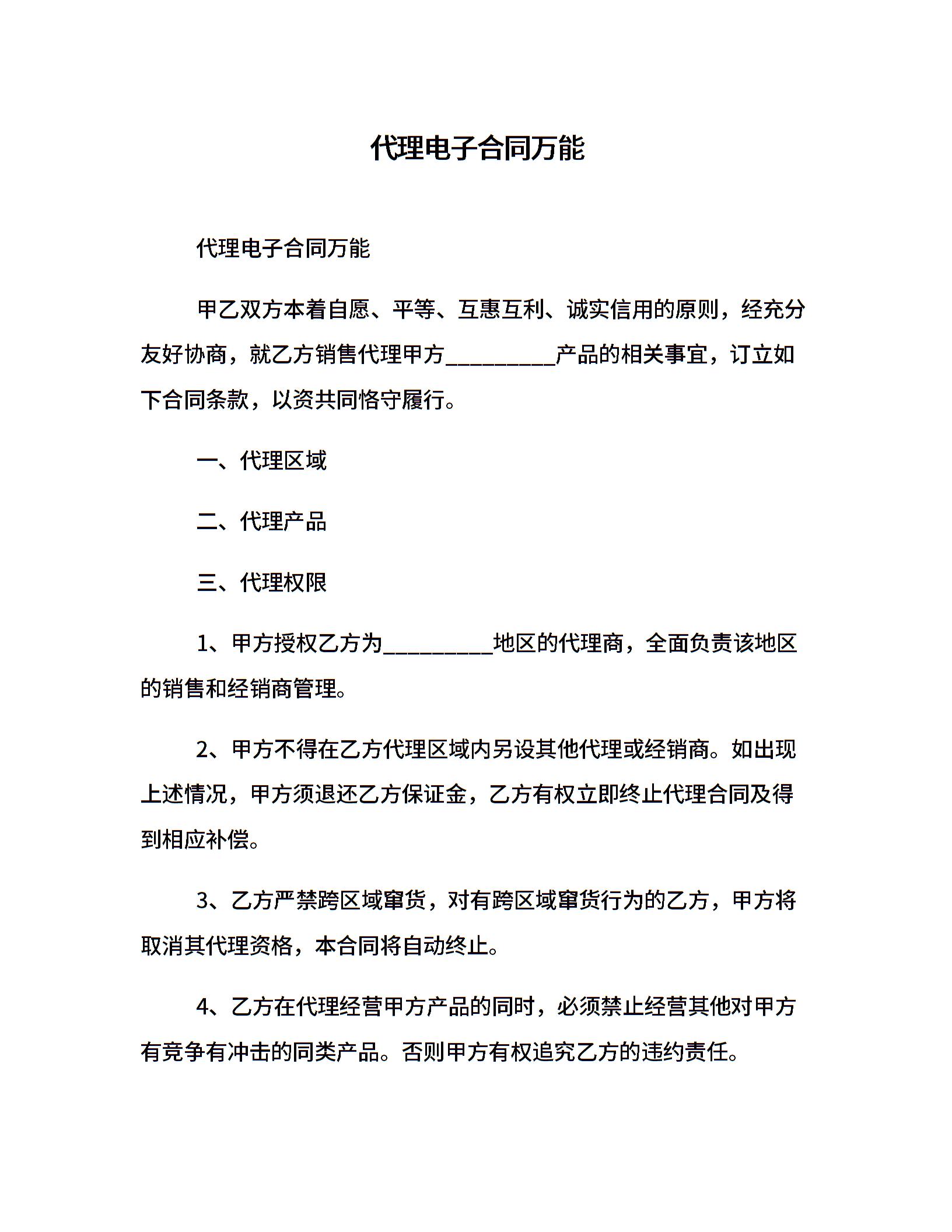 代理电子合同万能