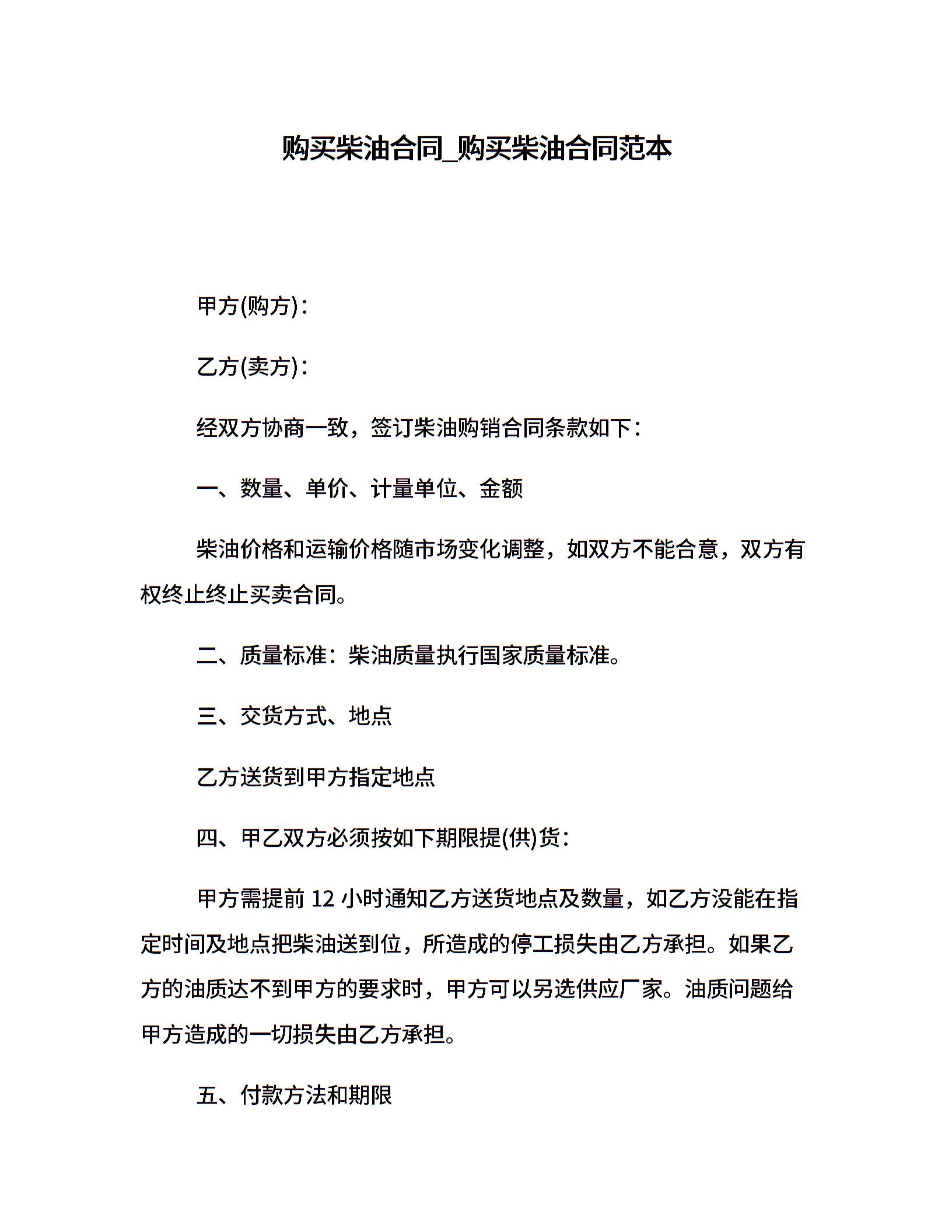 购买柴油合同_购买柴油合同范本