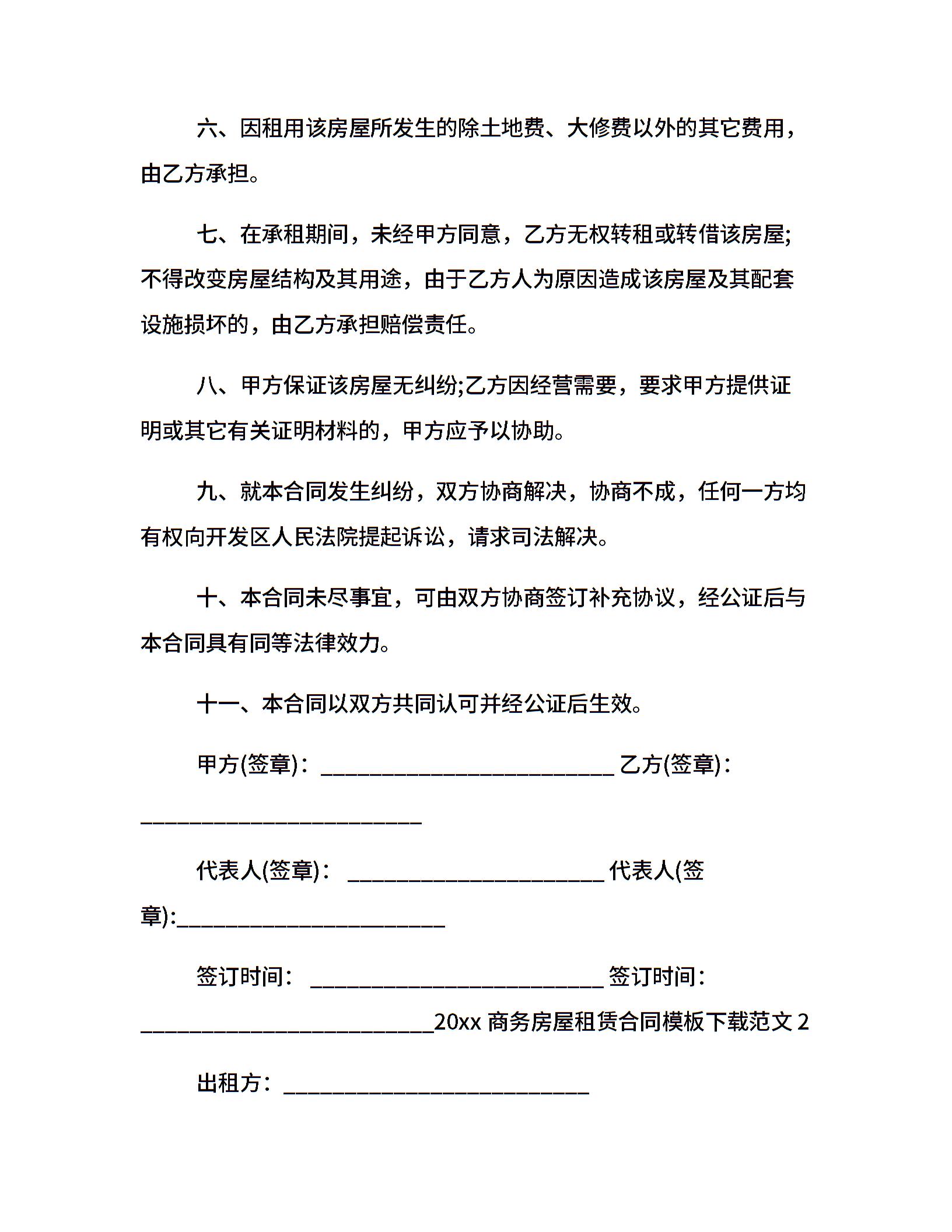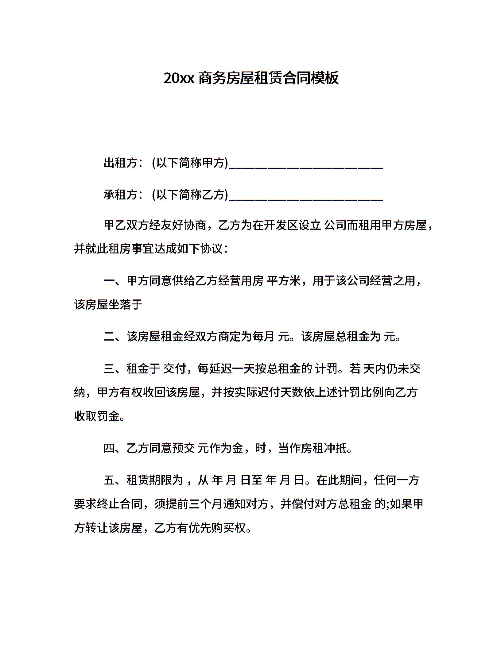 20xx商务房屋租赁合同模板