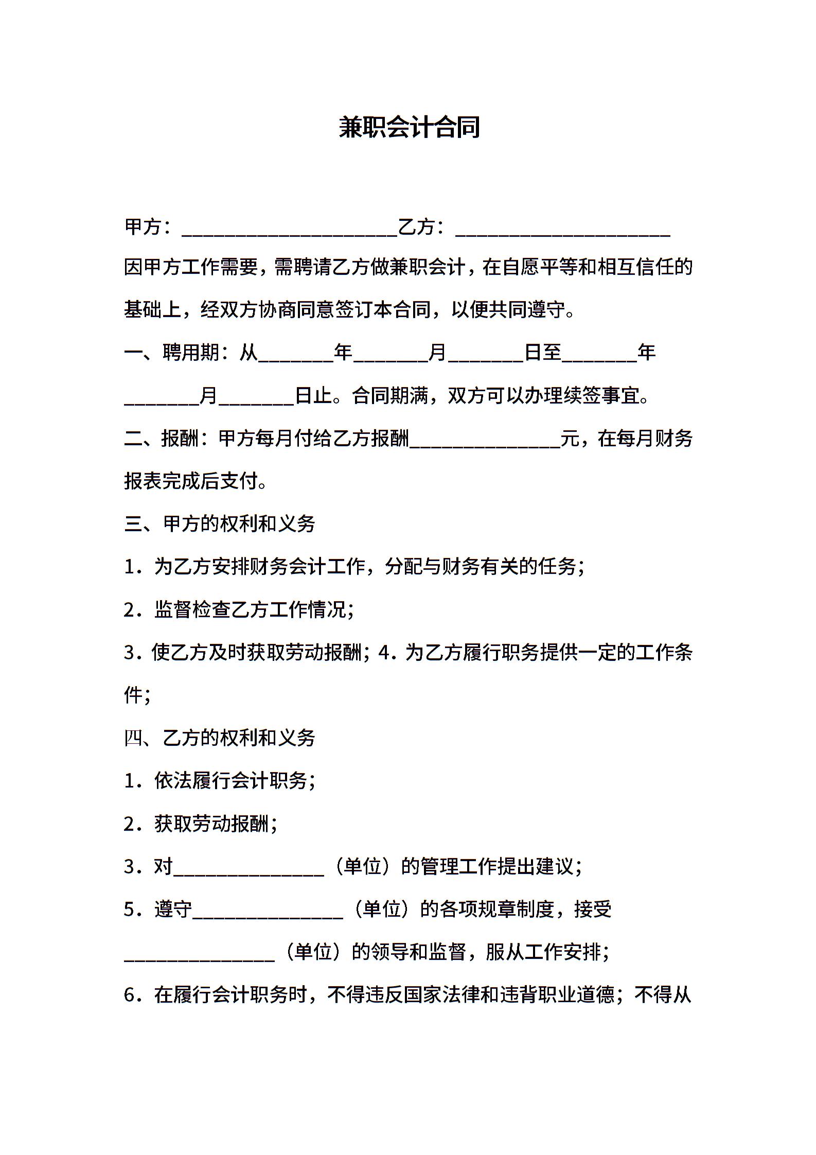 兼职会计合同