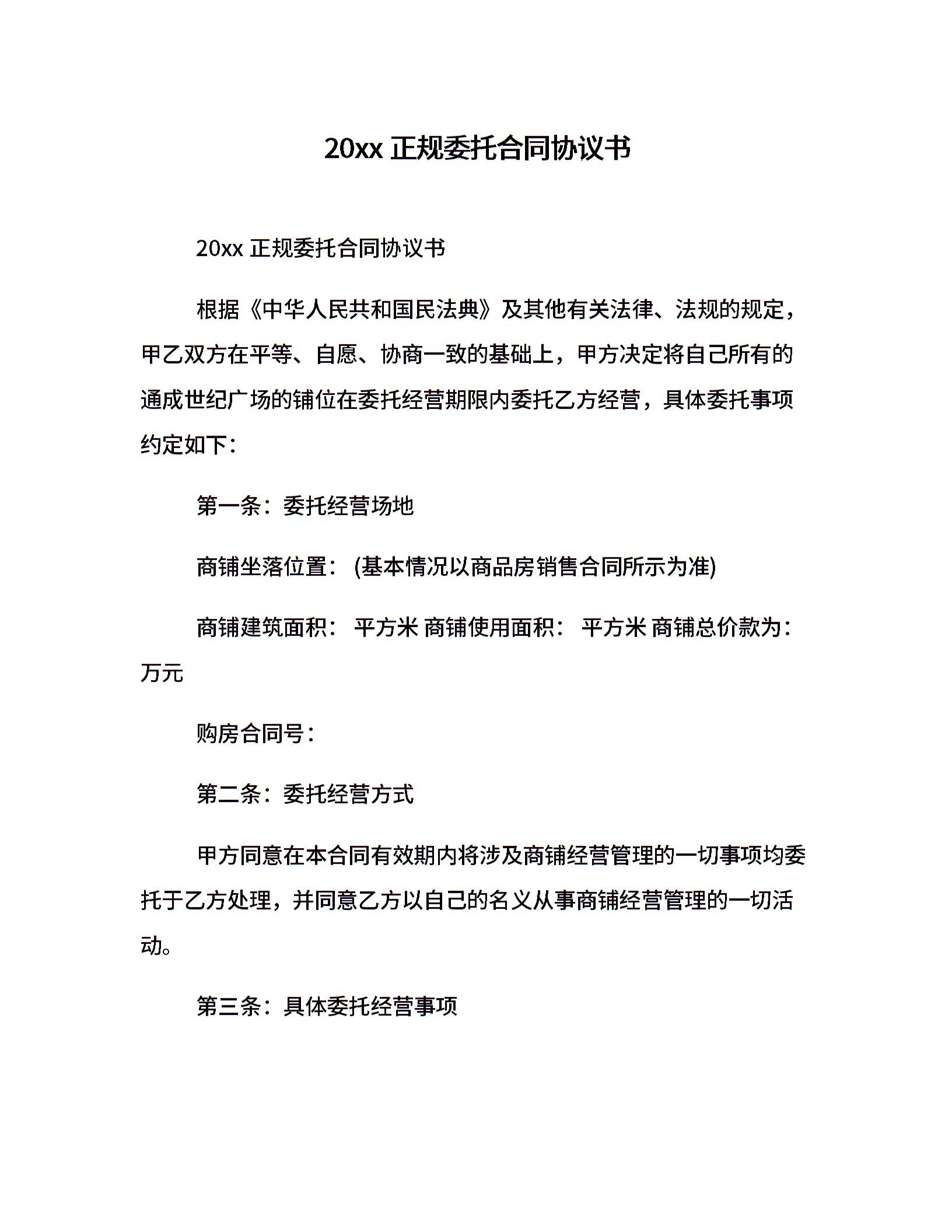 20xx正规委托合同协议书