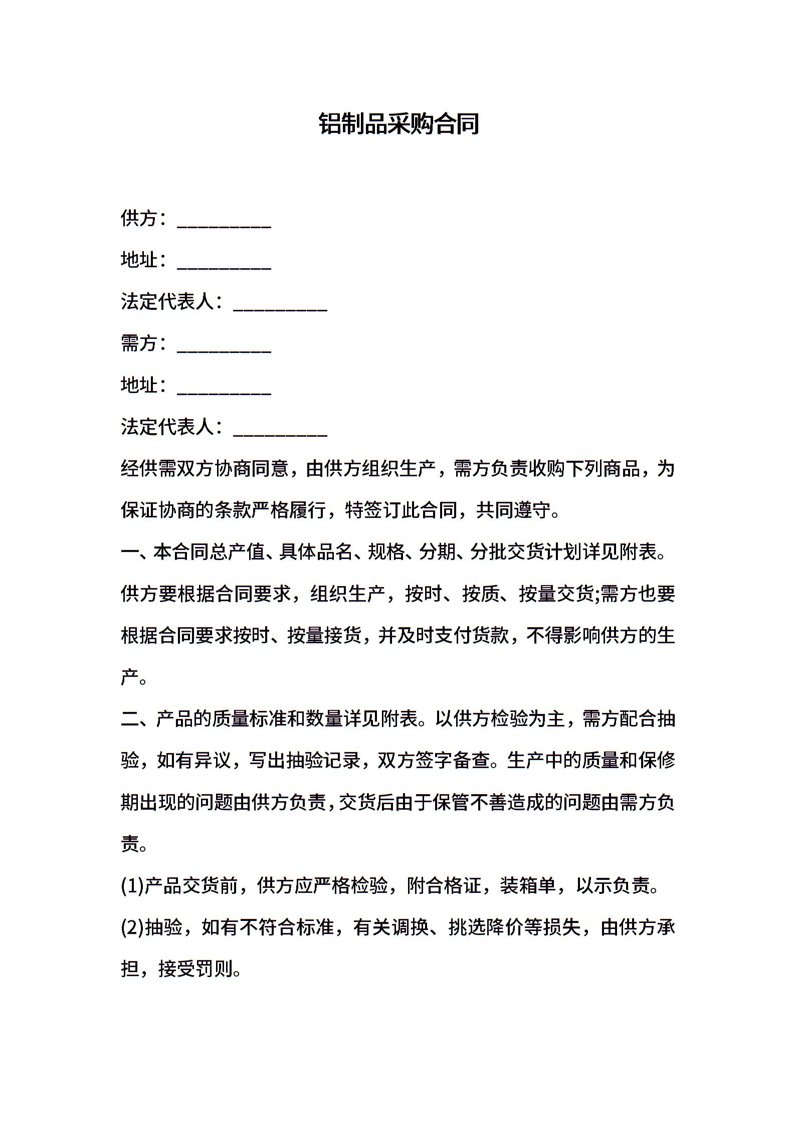 铝制品采购合同