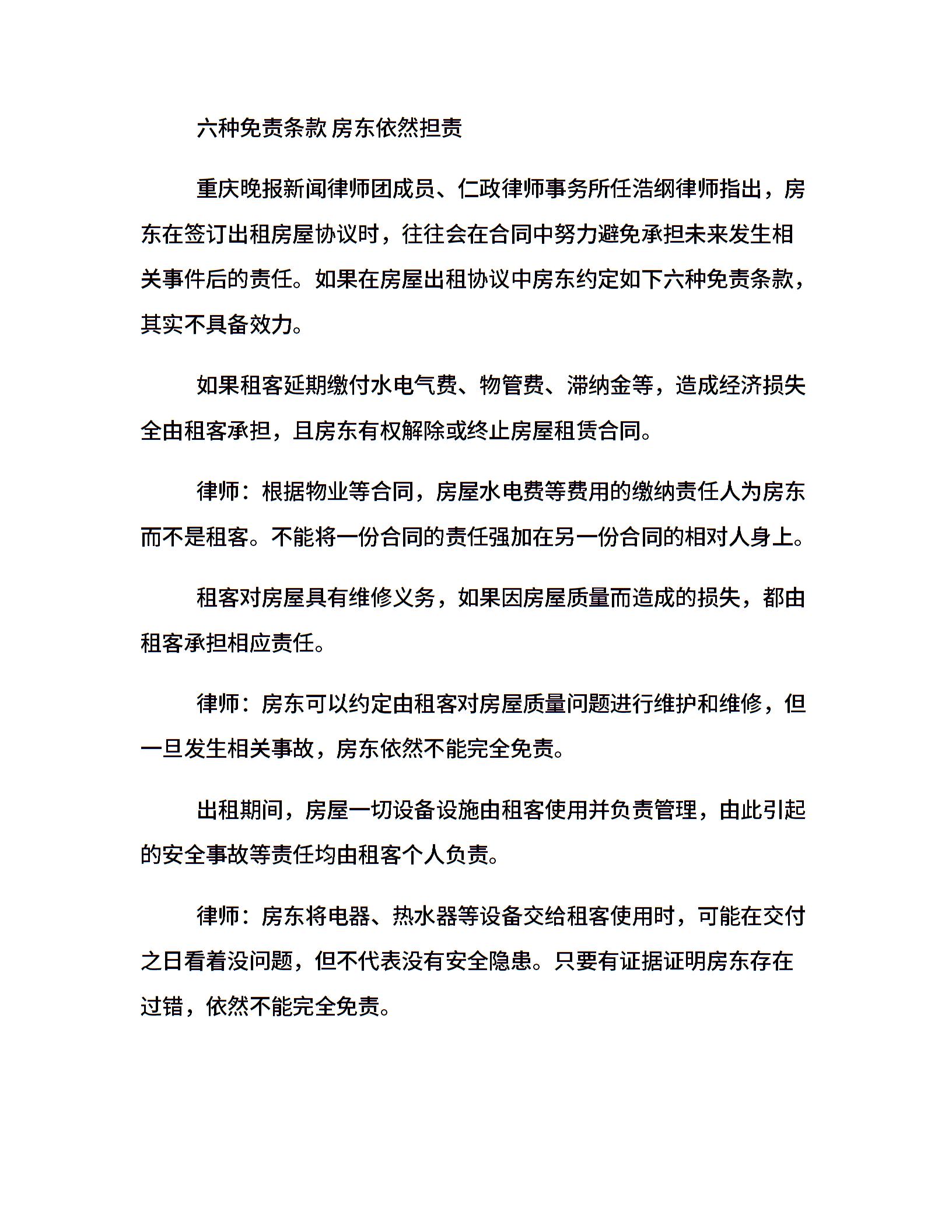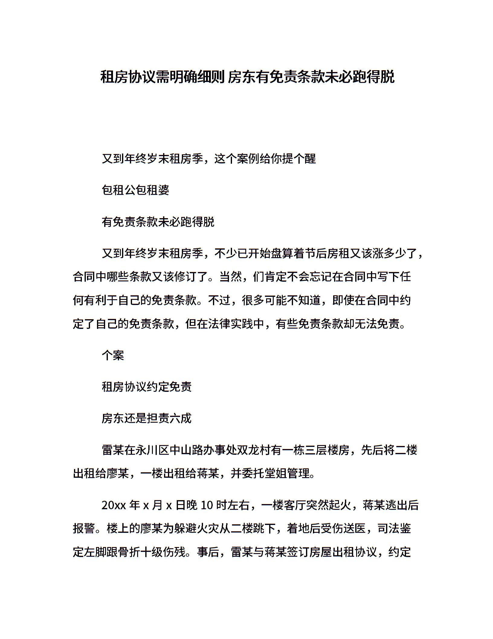 租房协议需明确细则 房东有免责条款未必跑得脱