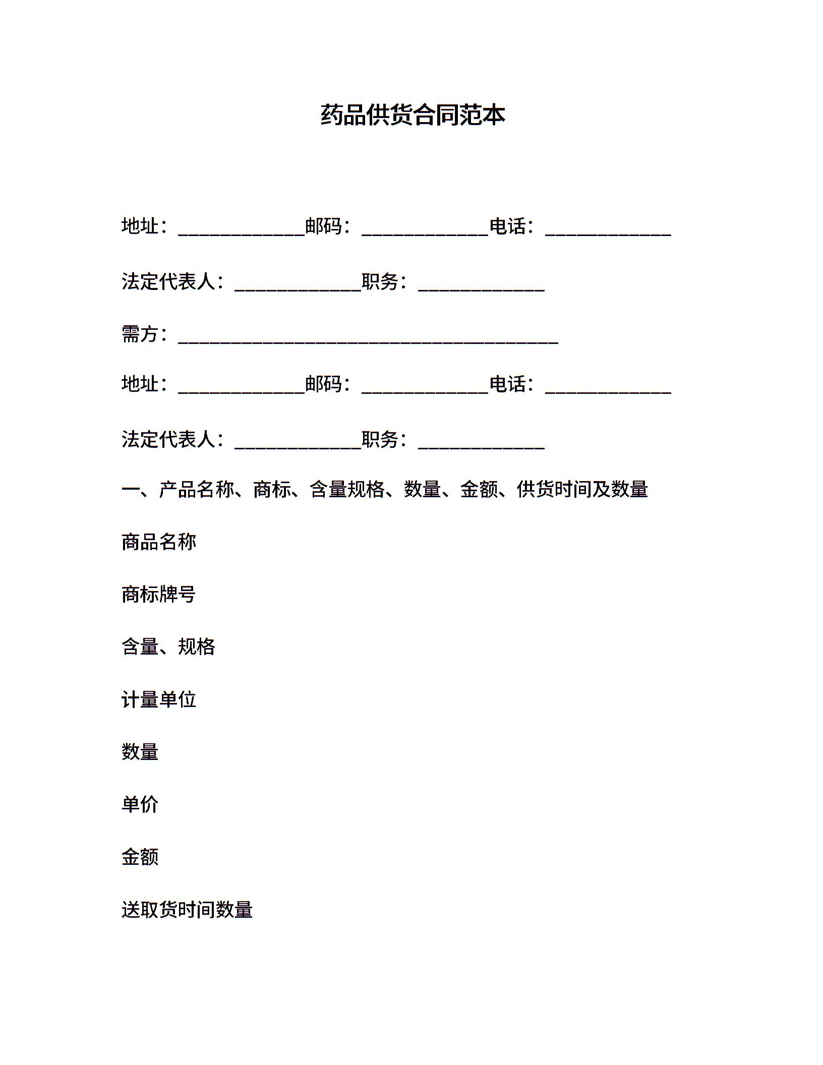 药品供货合同范本