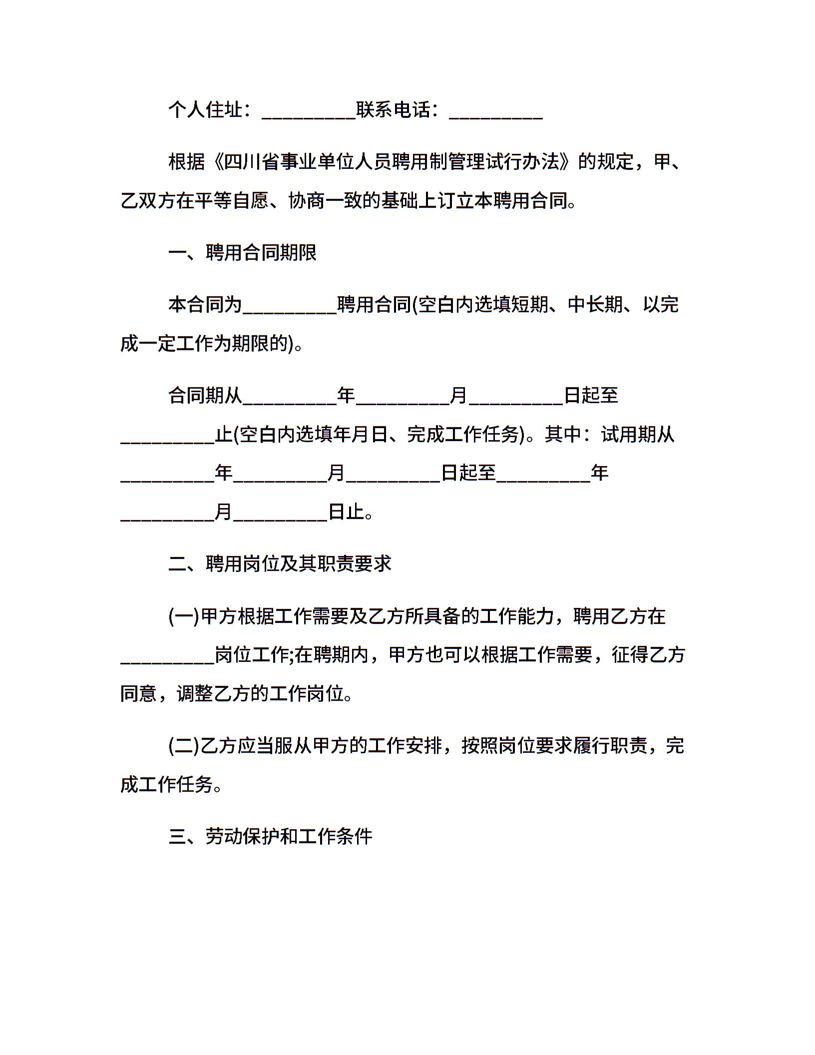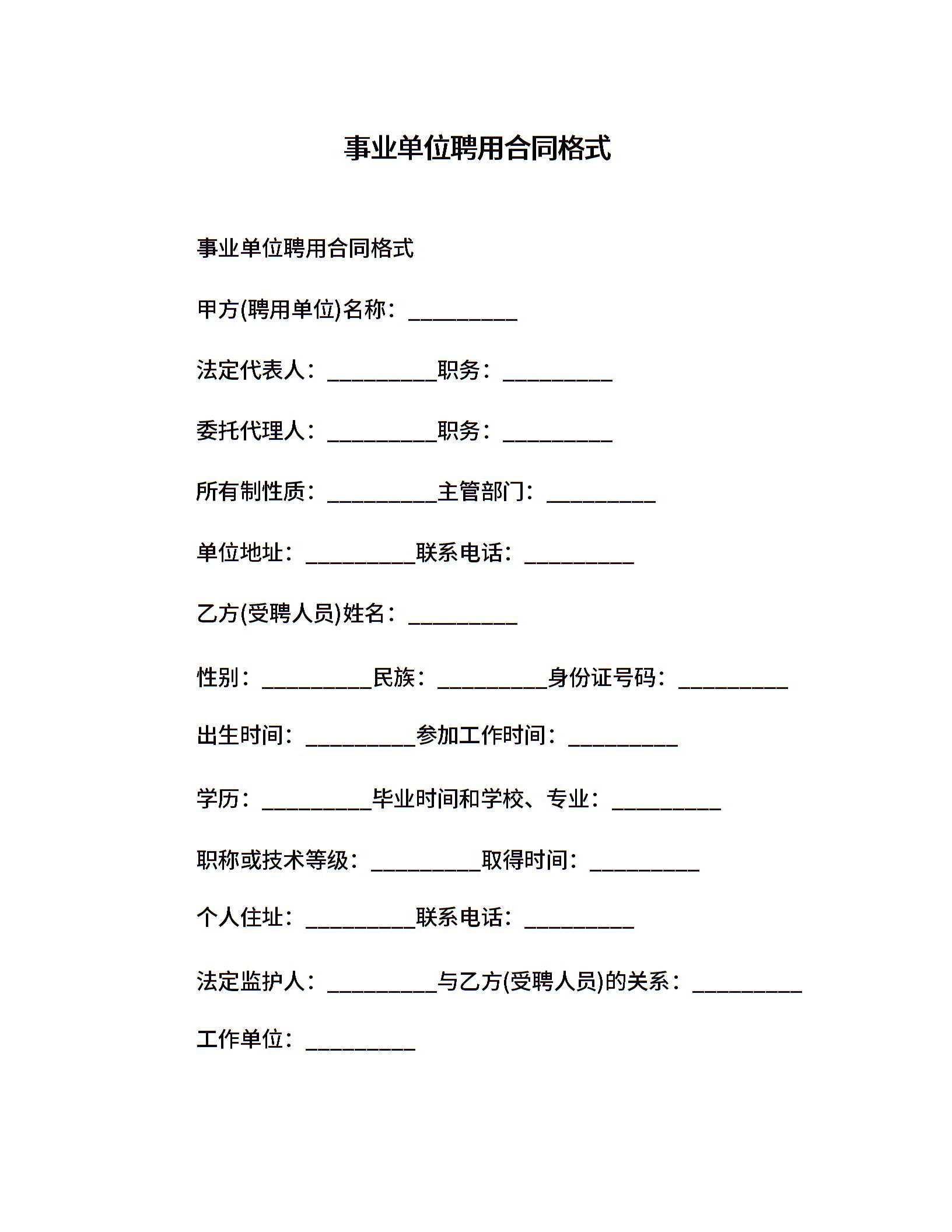 事业单位聘用合同格式
