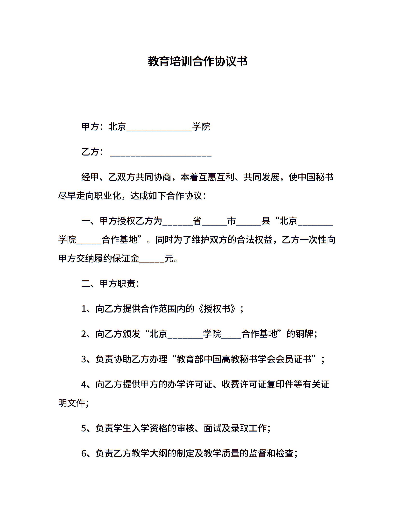 教育培训合作协议书