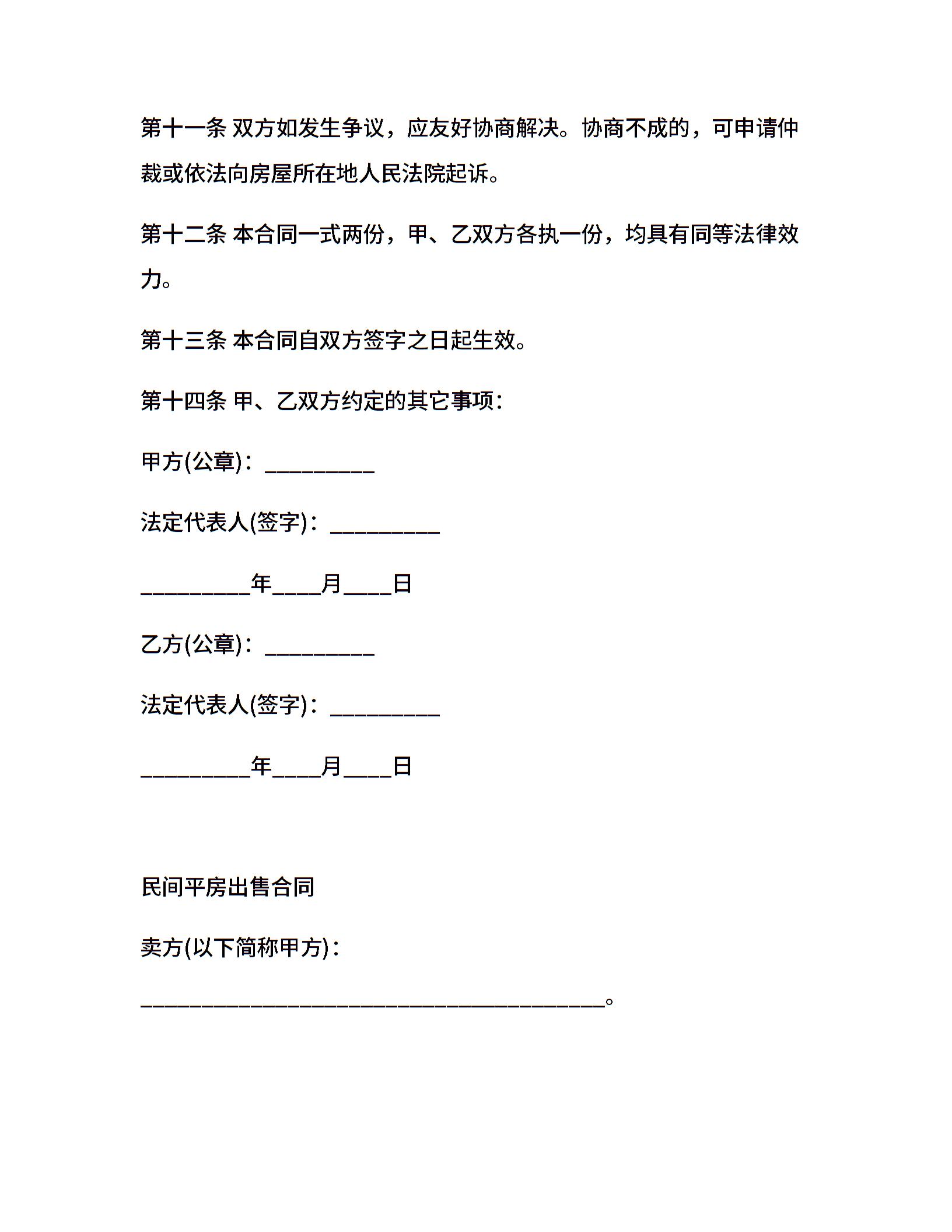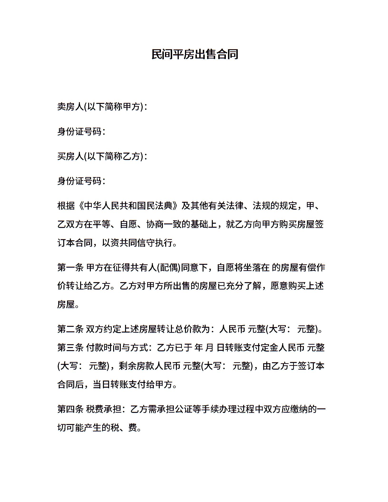 民间平房出售合同