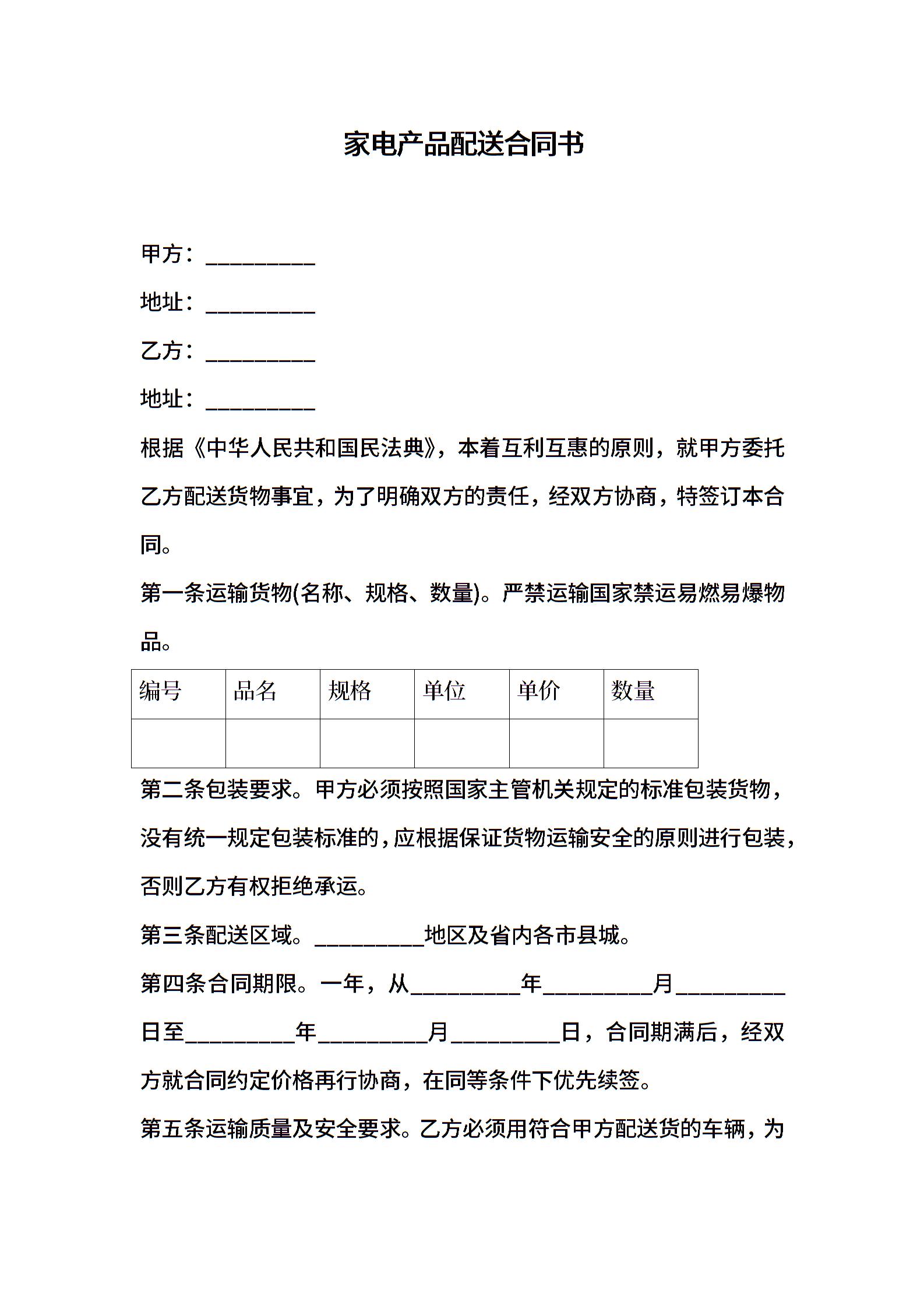 家电产品配送合同书