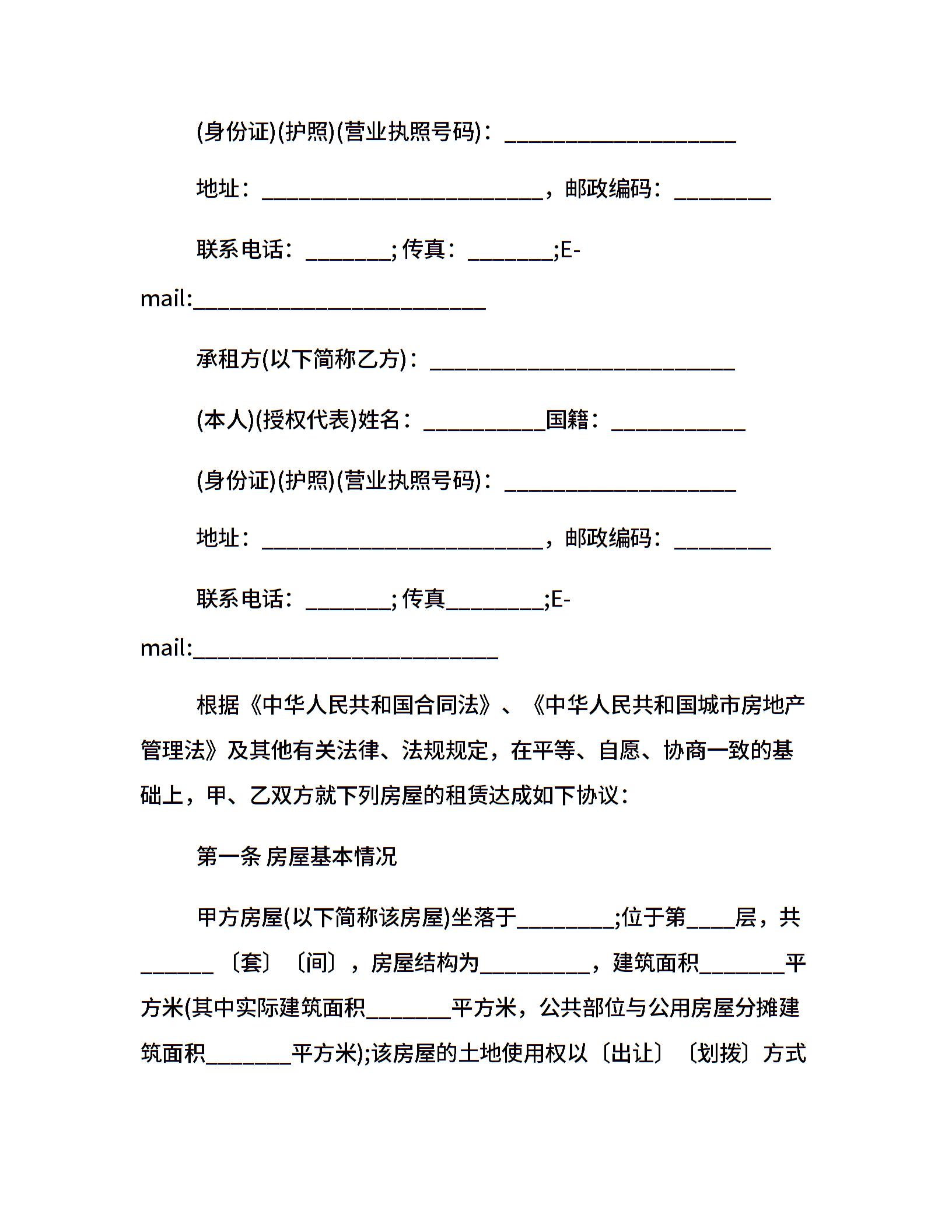 当前位置:量子办公 > 合同模板 > 房屋租赁 >