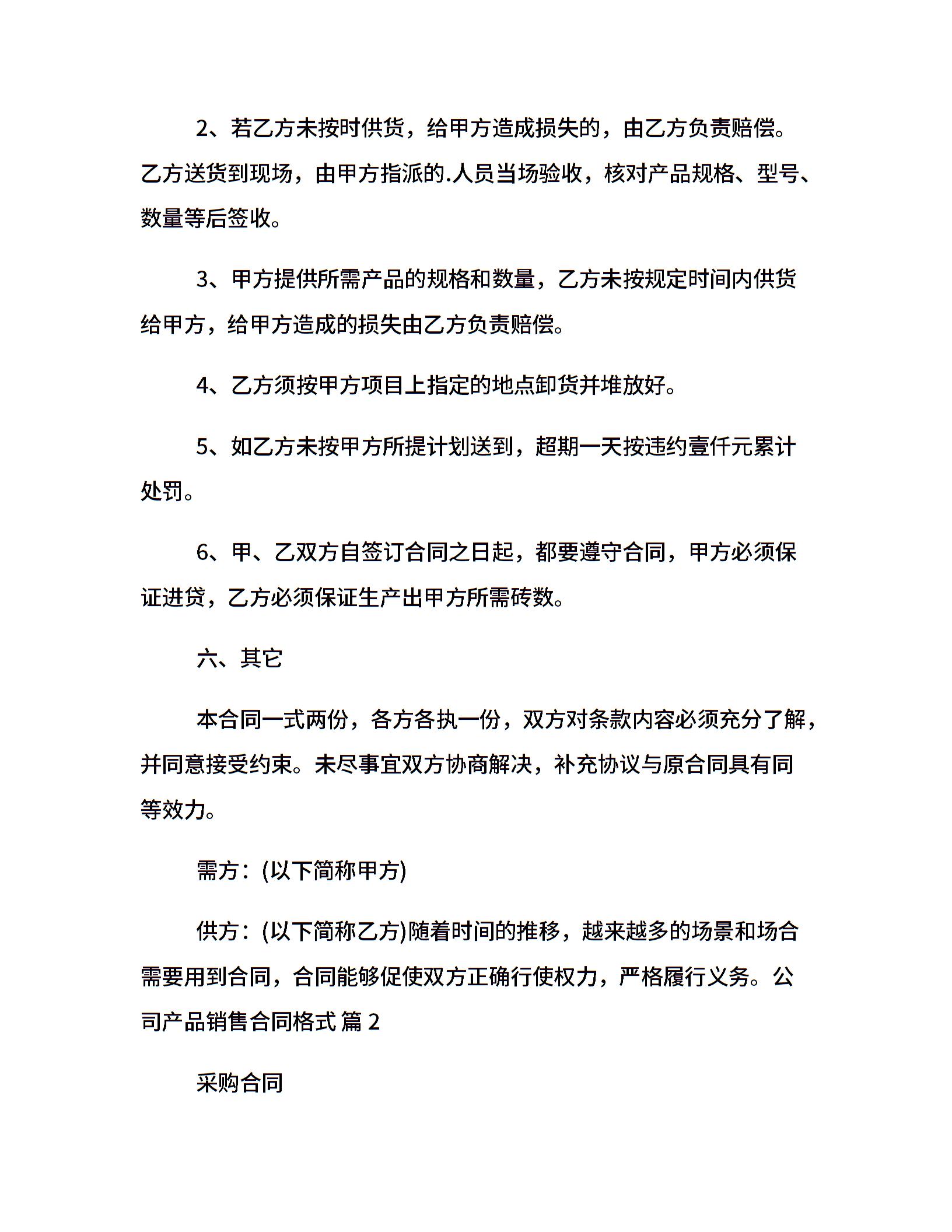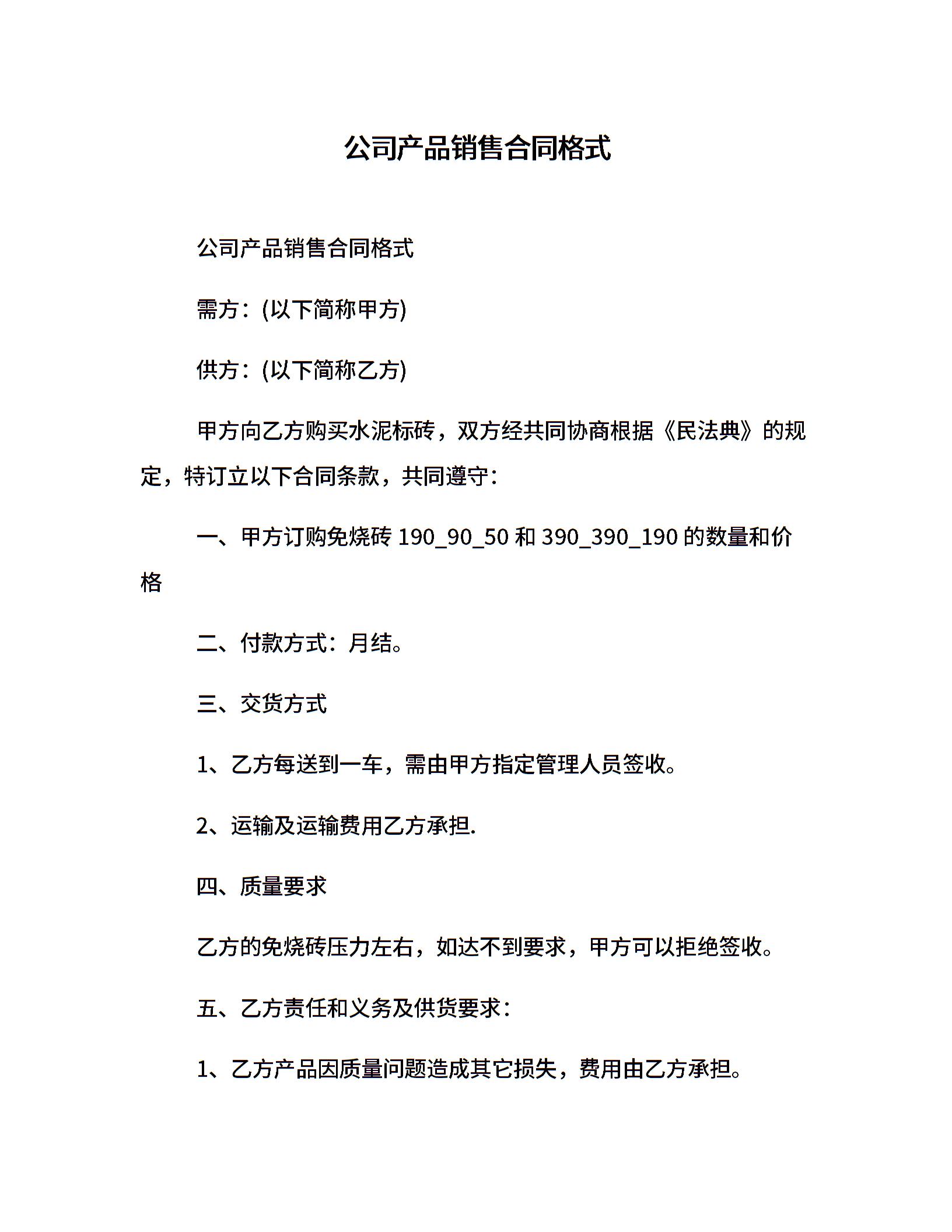 公司产品销售合同格式