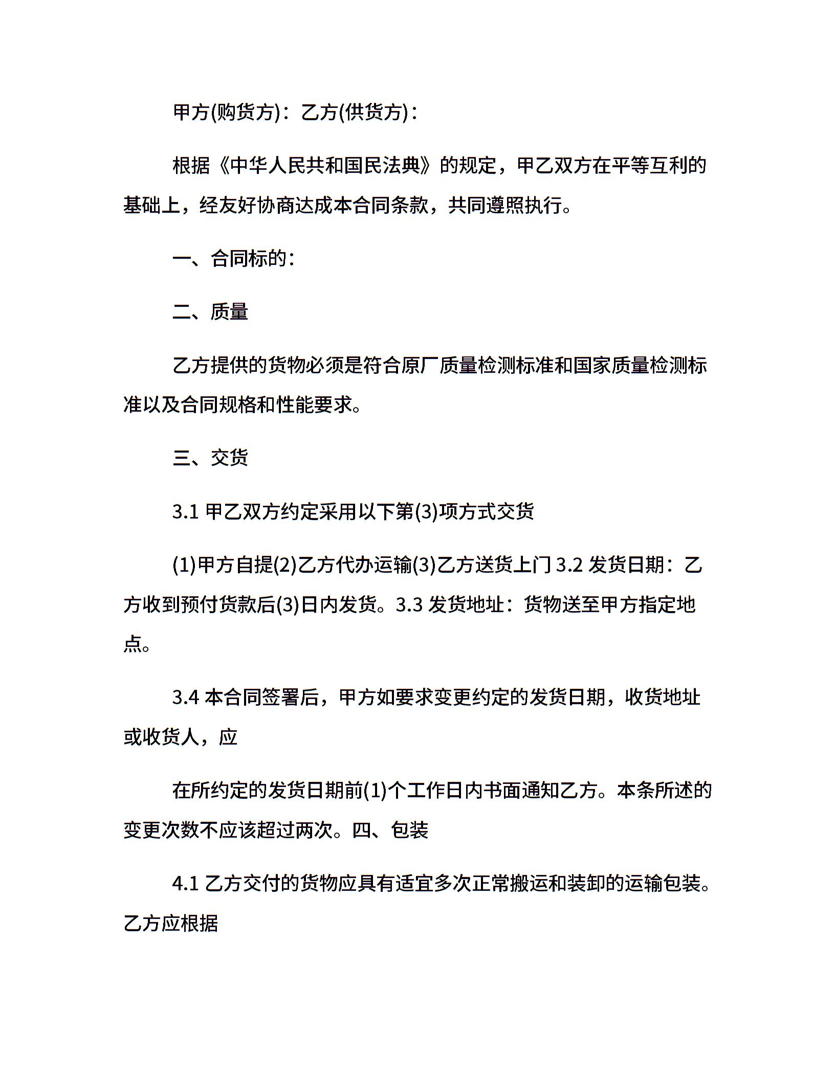 • 分类 购销合同