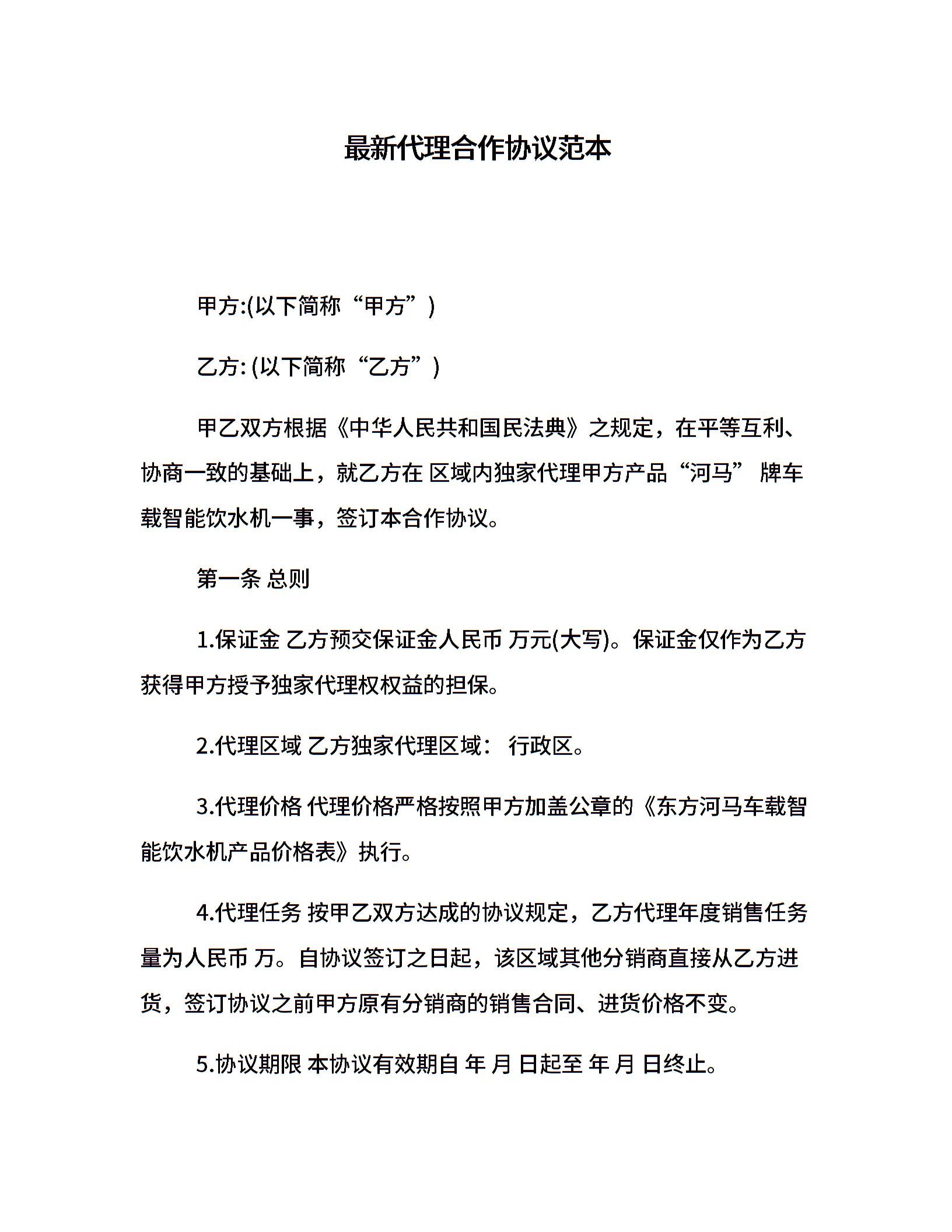 最新代理合作协议范本