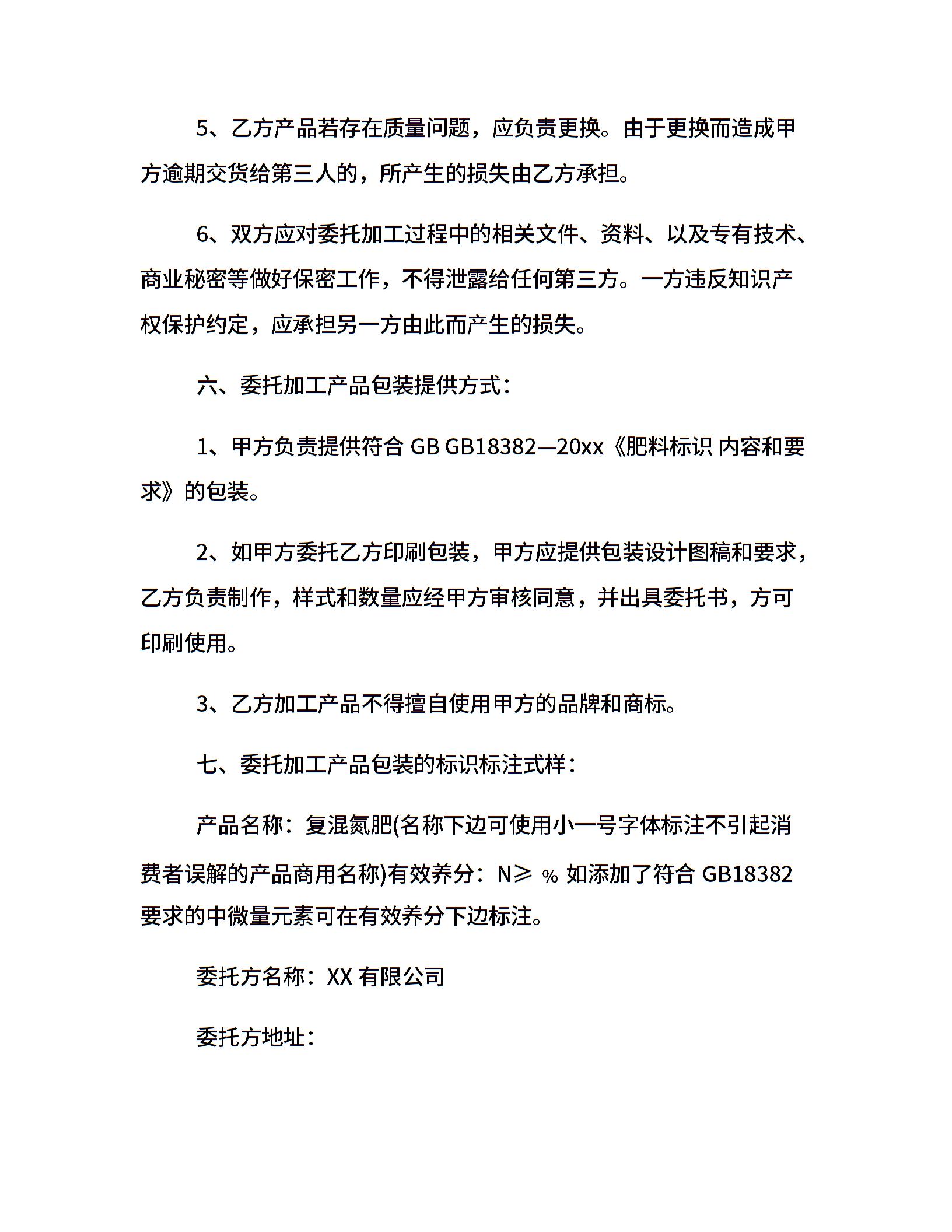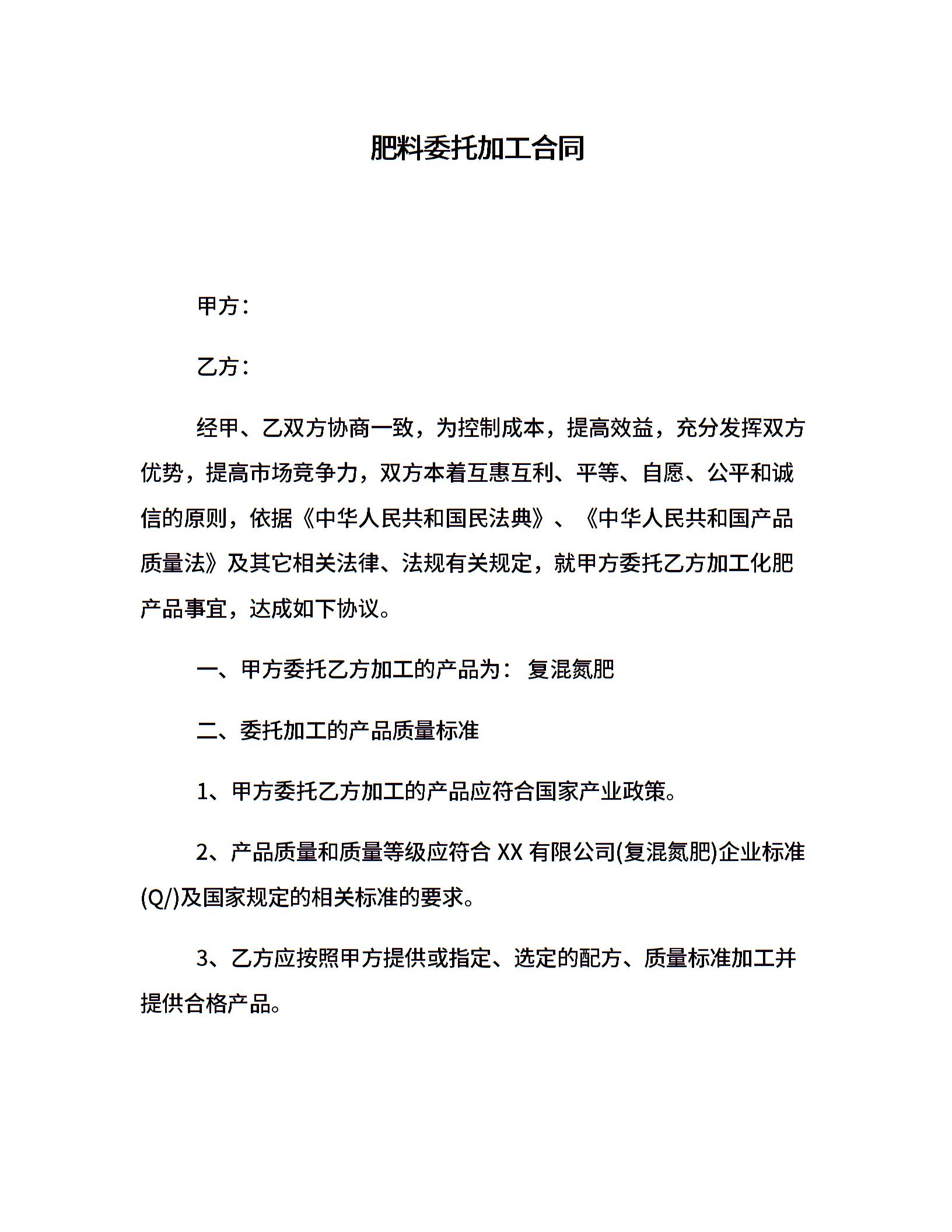 肥料委托加工合同