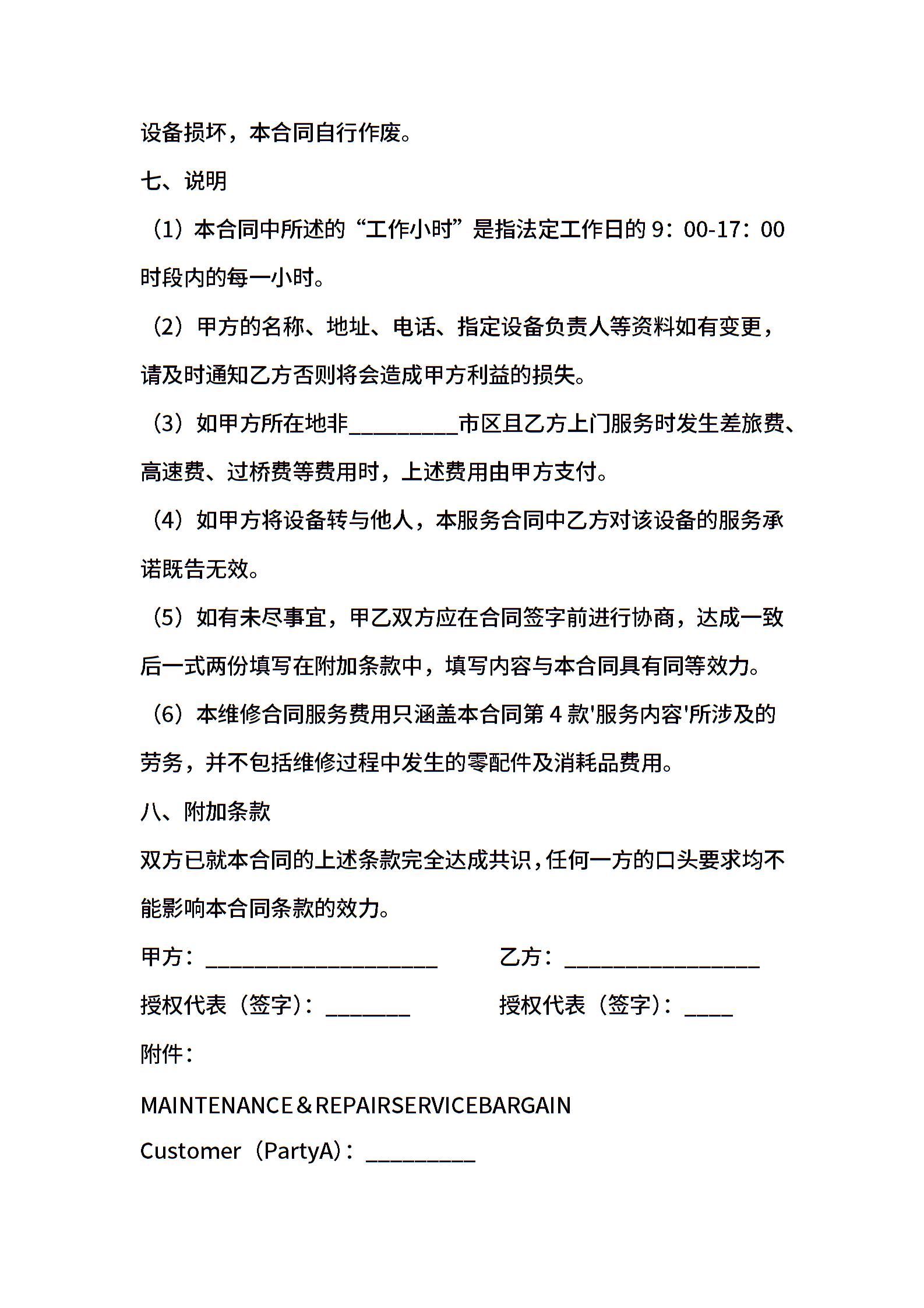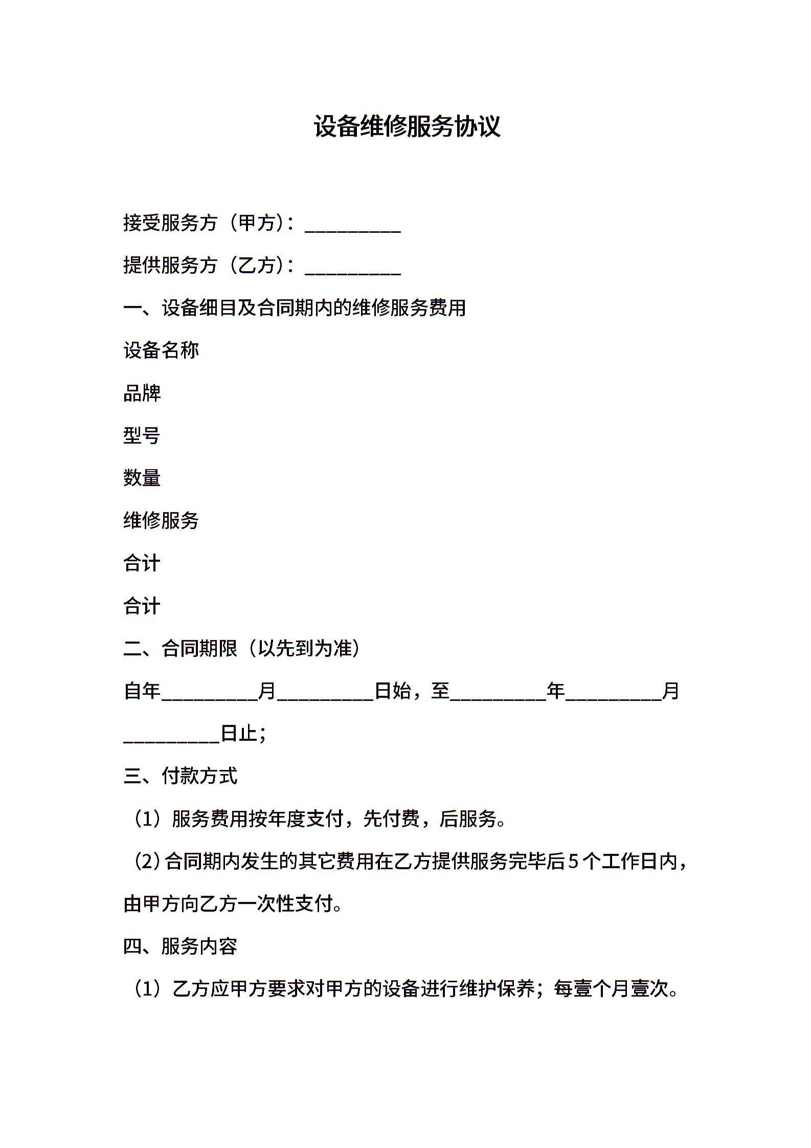 设备维修服务协议