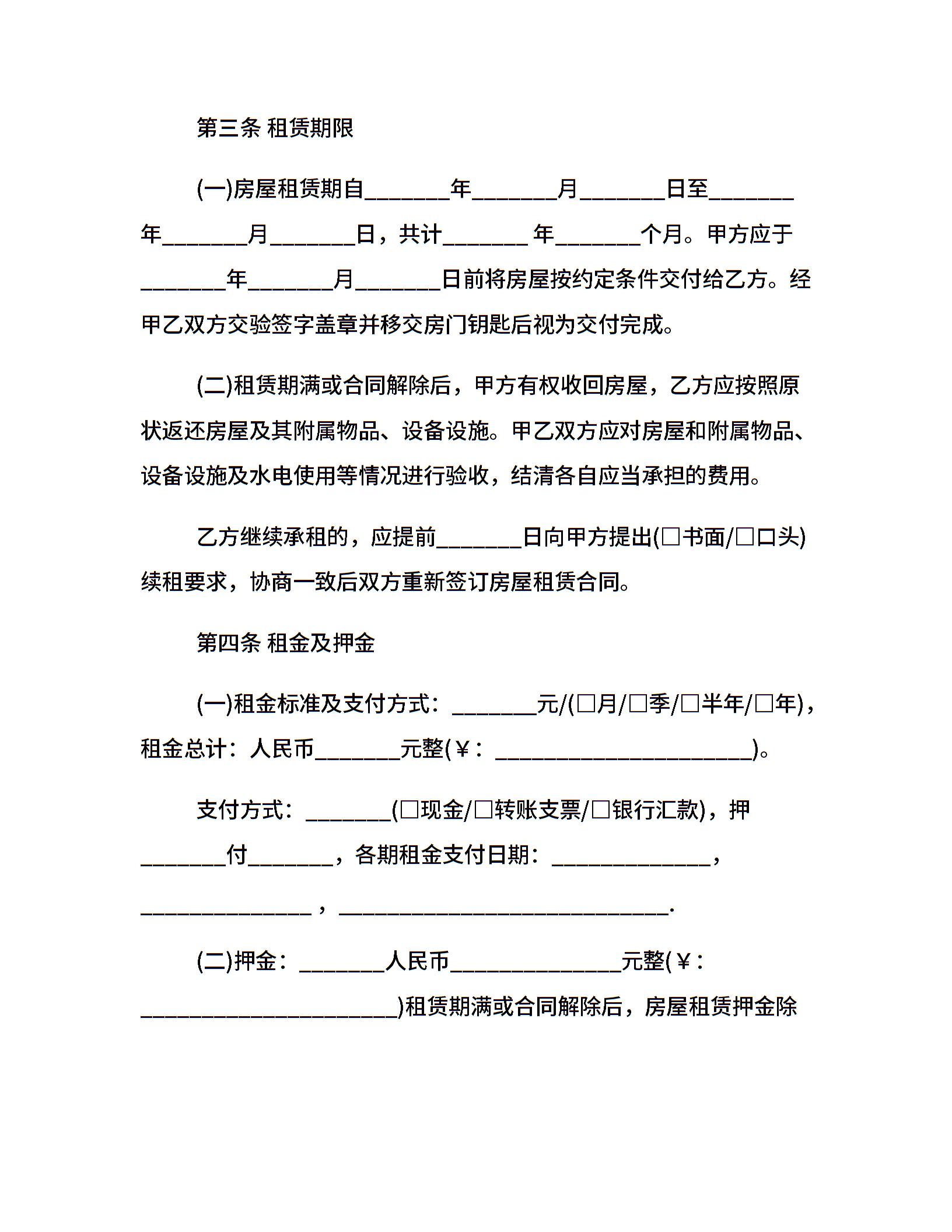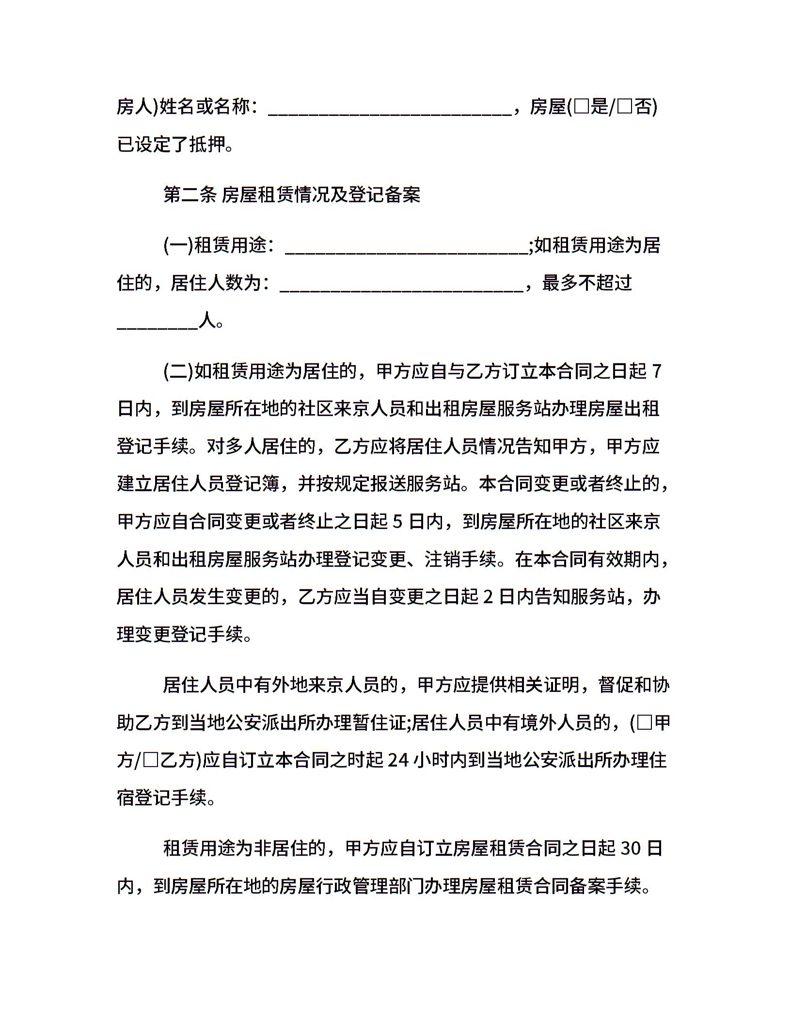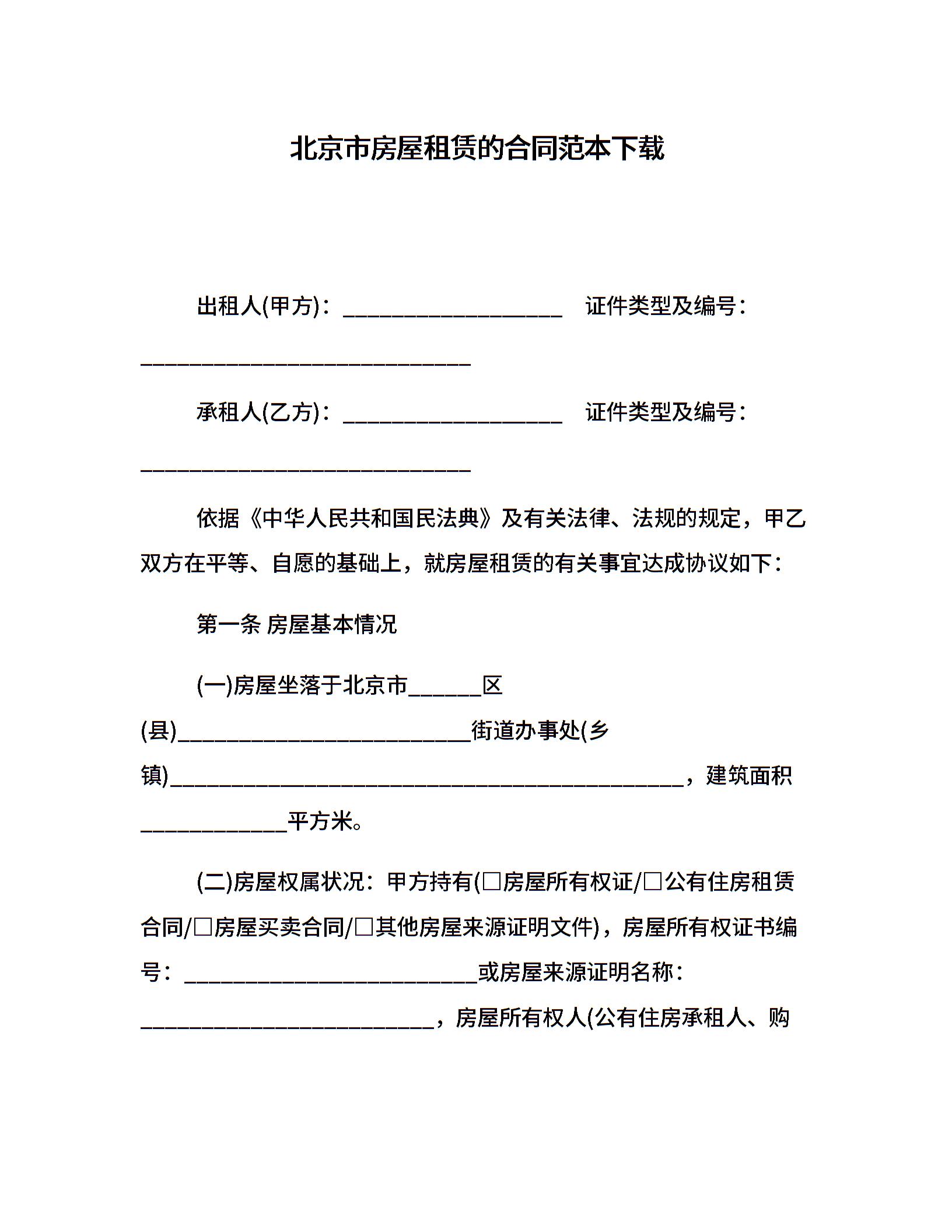 北京市房屋租赁的合同范本下载