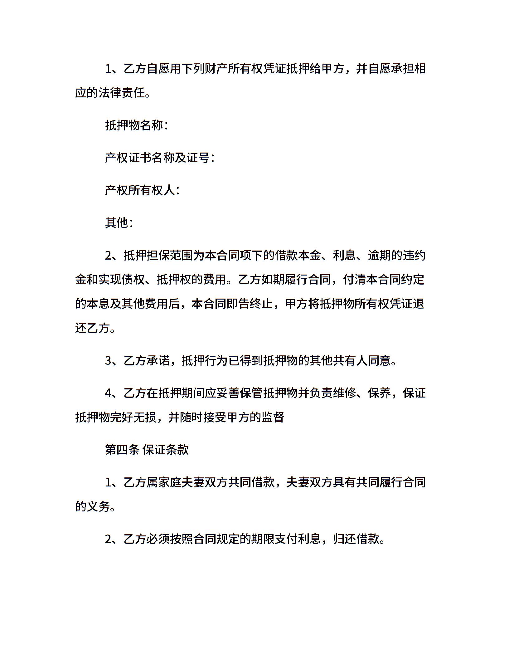 民间抵押借款合同