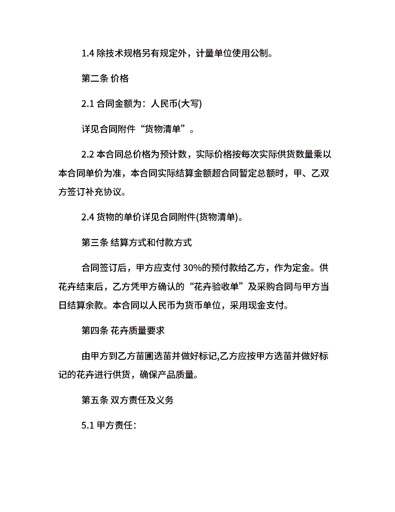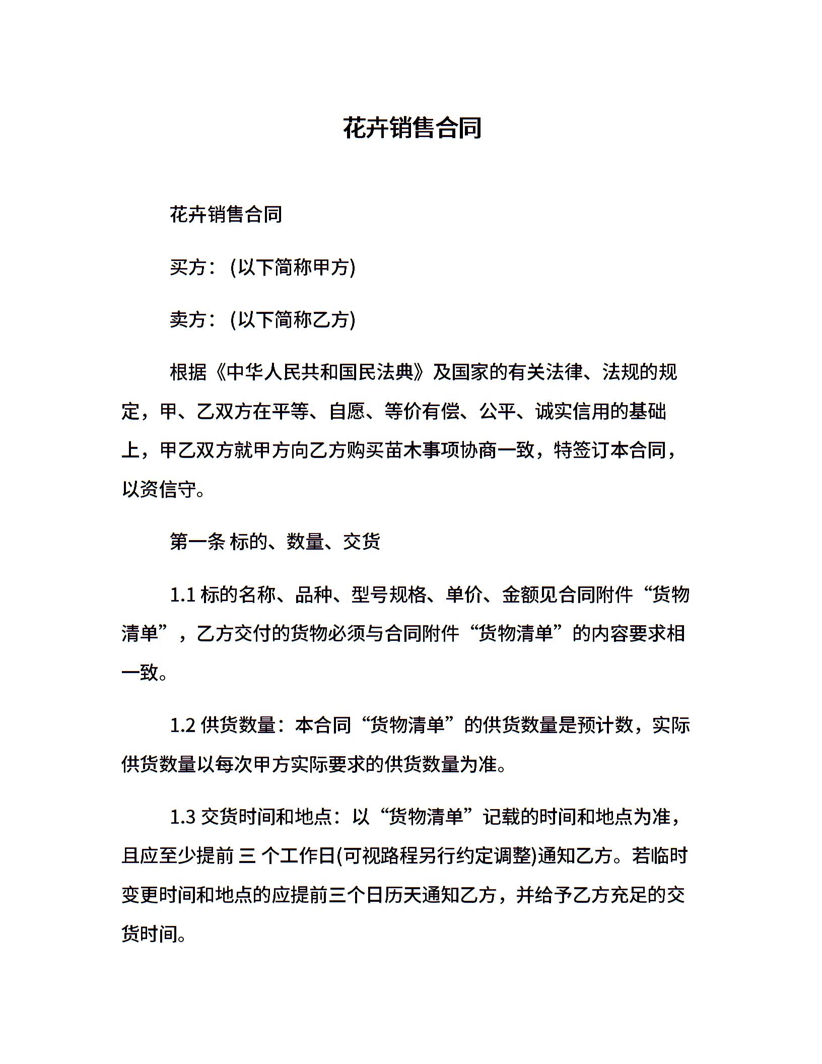 花卉销售合同