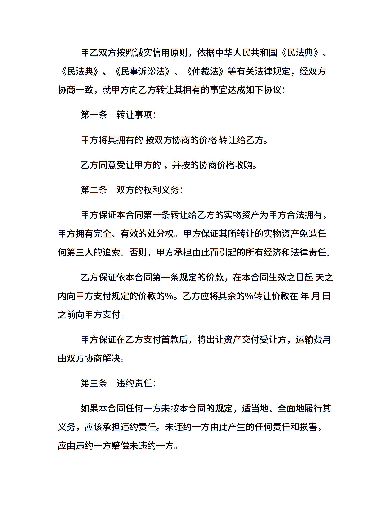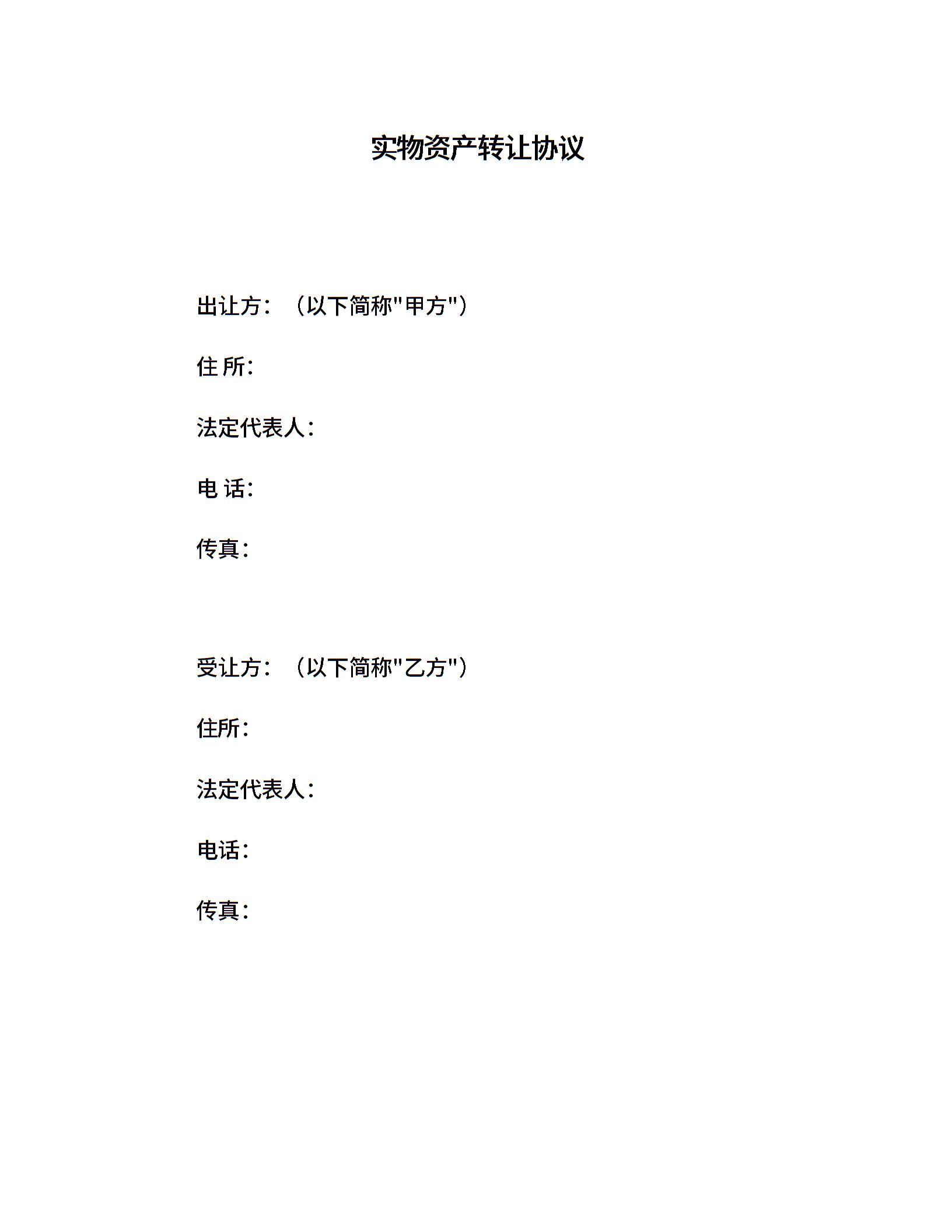 实物资产转让协议