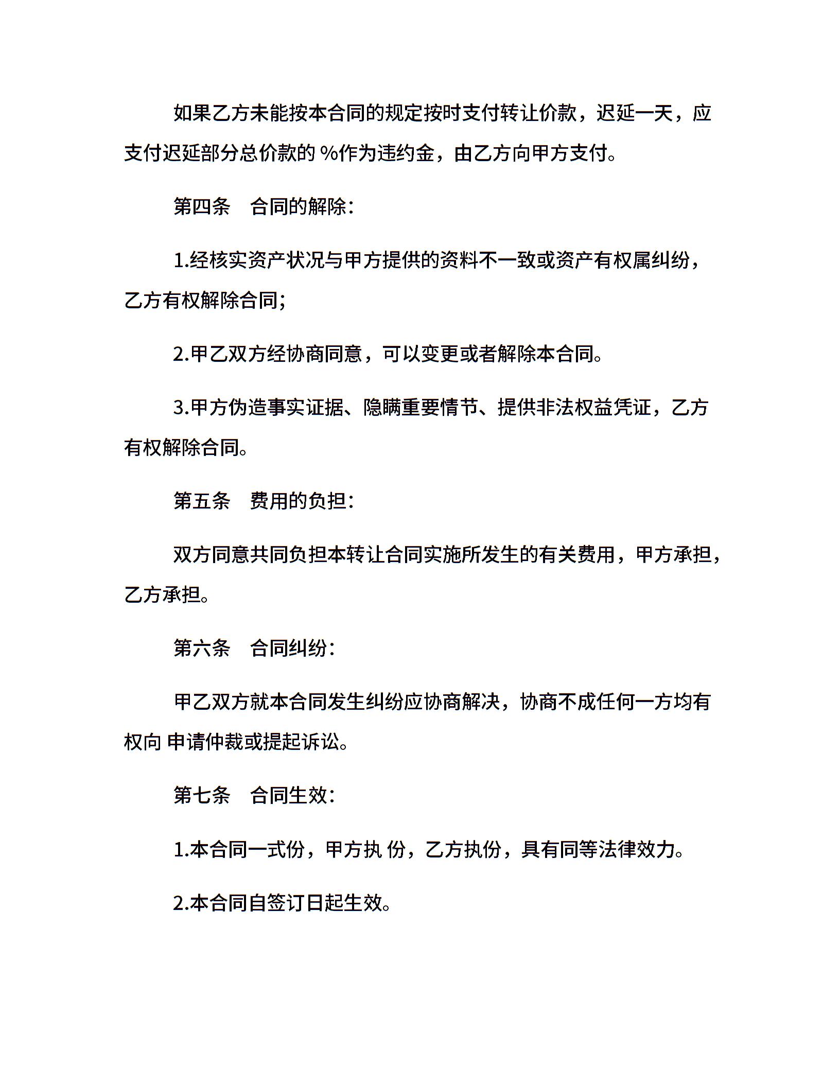 当前位置:量子办公 > 合同模板 > 转让合同 >