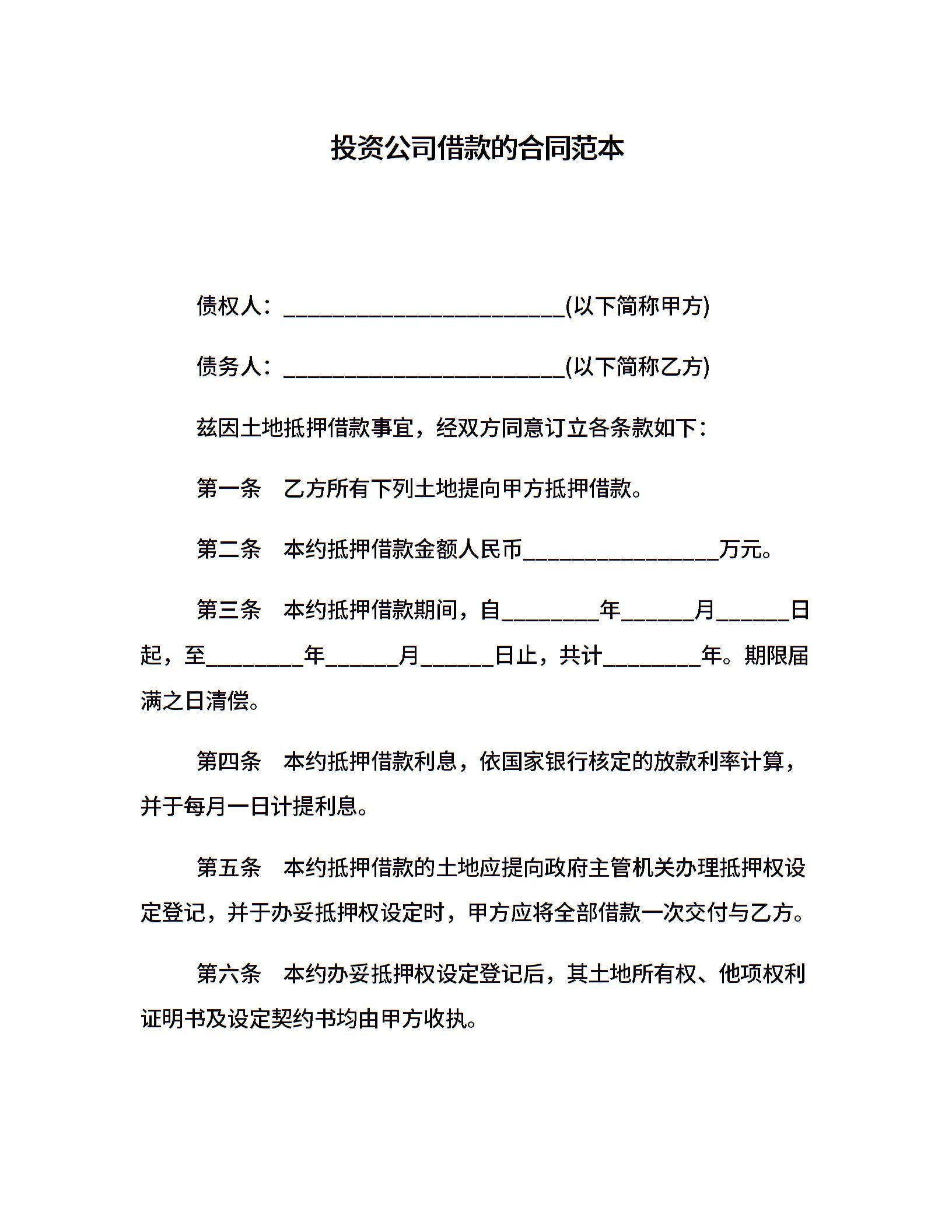 投资公司借款的合同范本