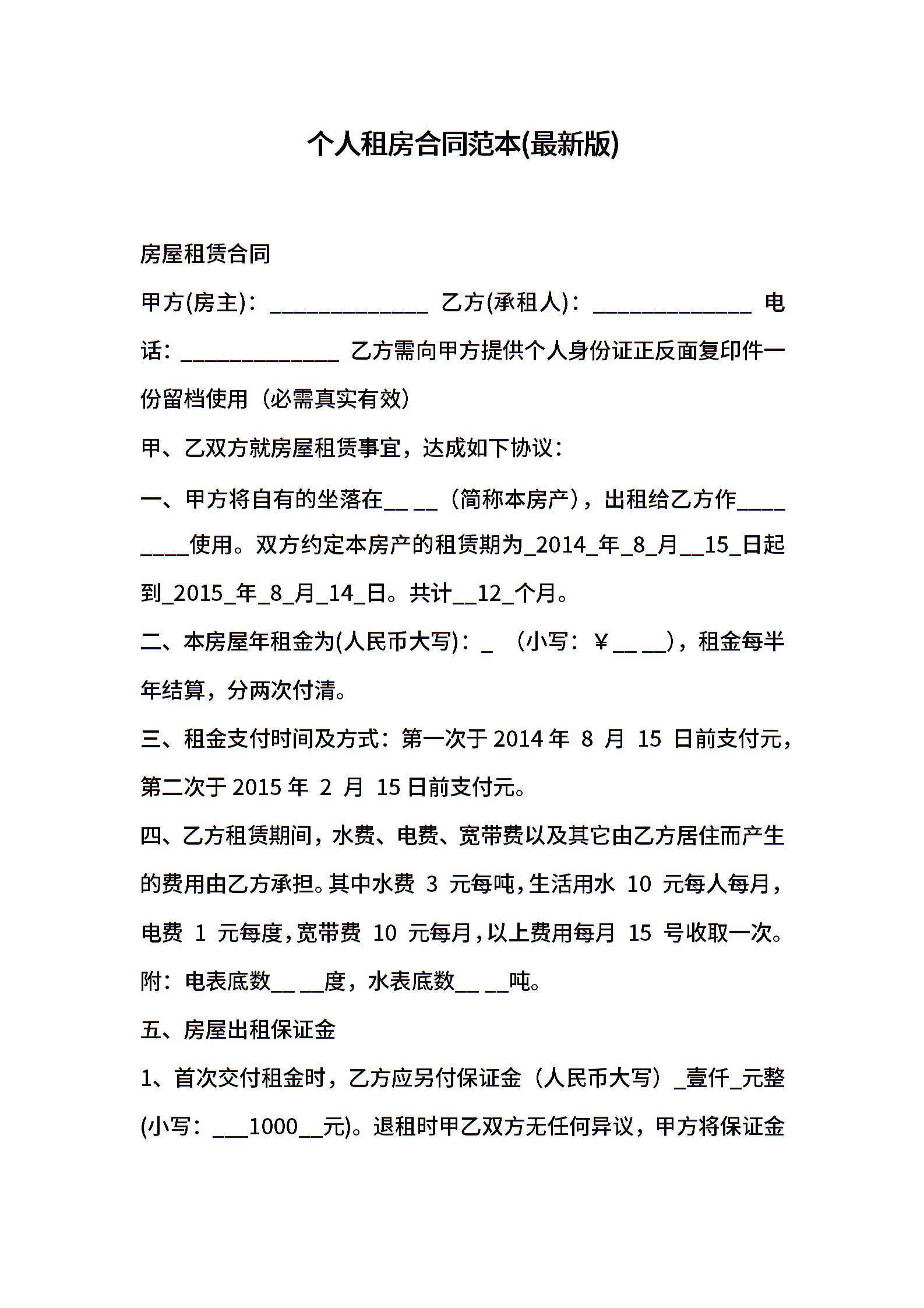 个人租房合同范本(最新版)_1
