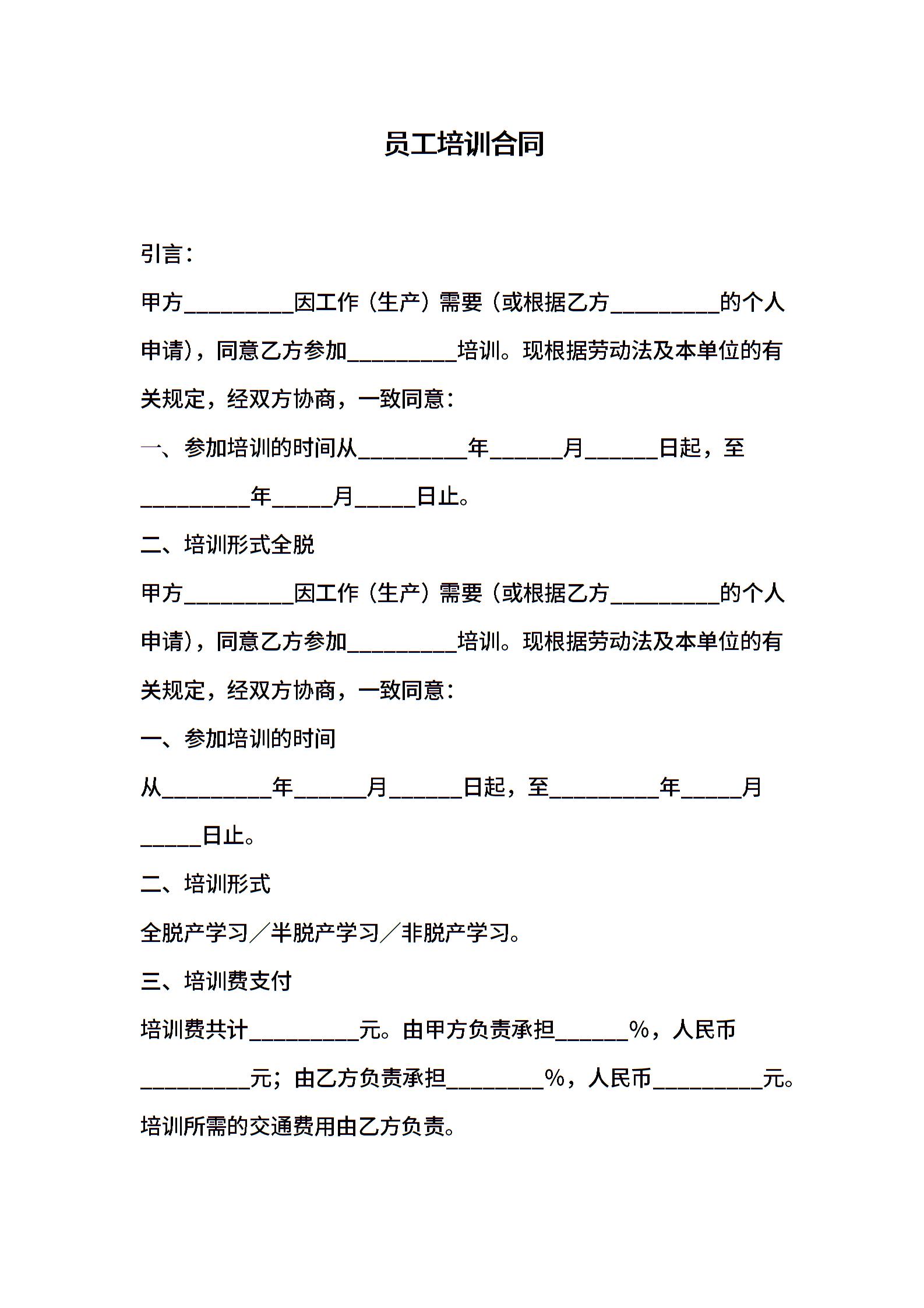 员工培训合同 (2)