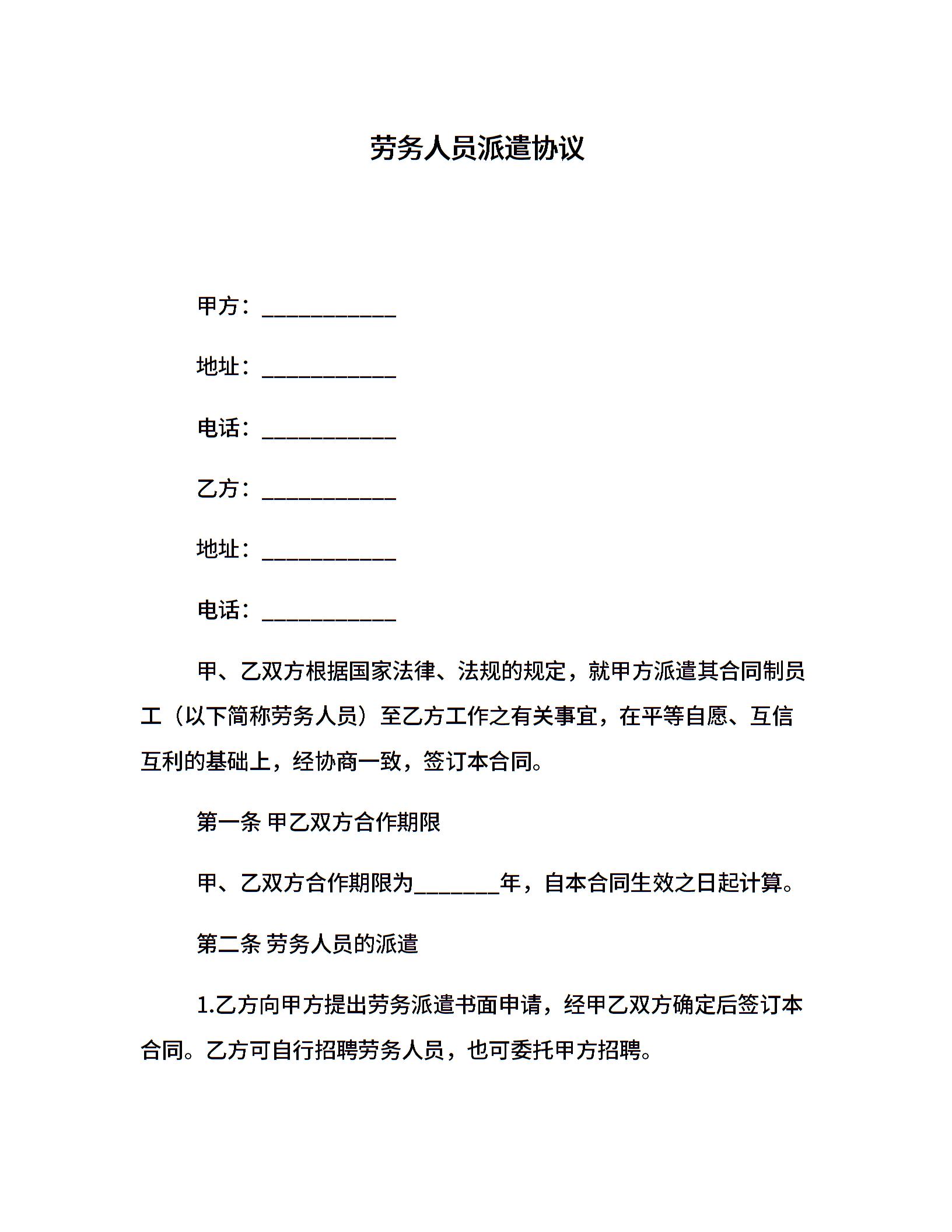 劳务人员派遣协议