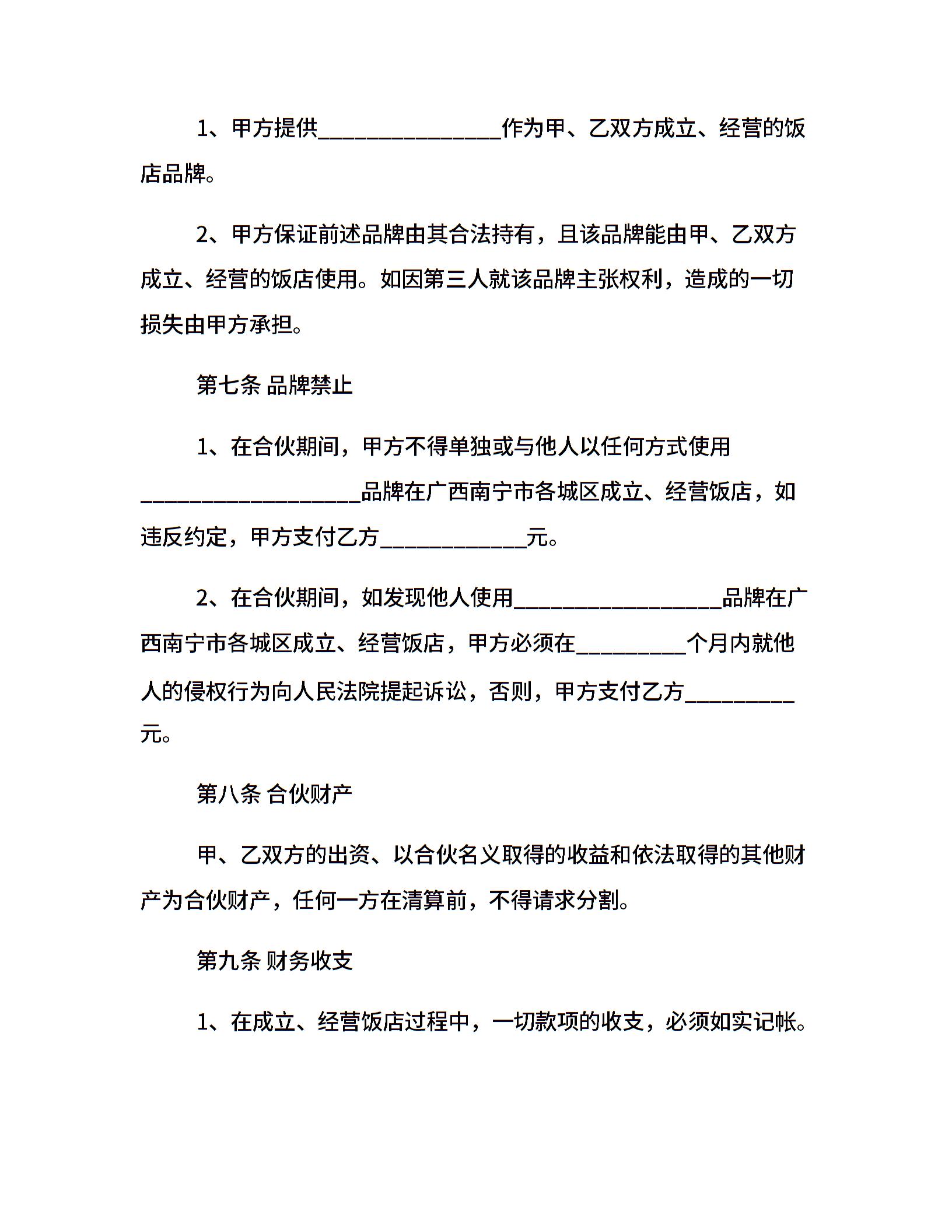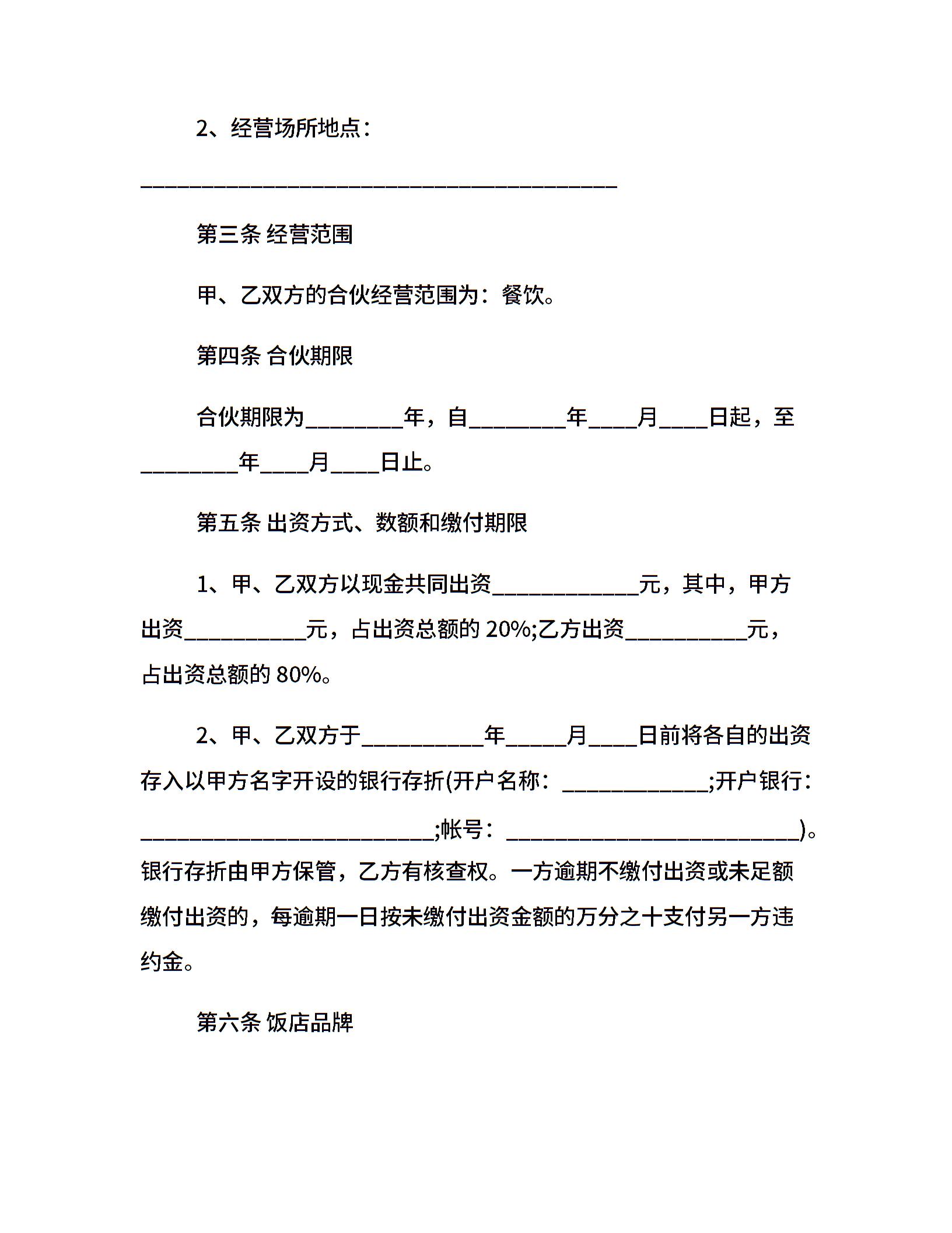 饭店合伙经营协议经典书