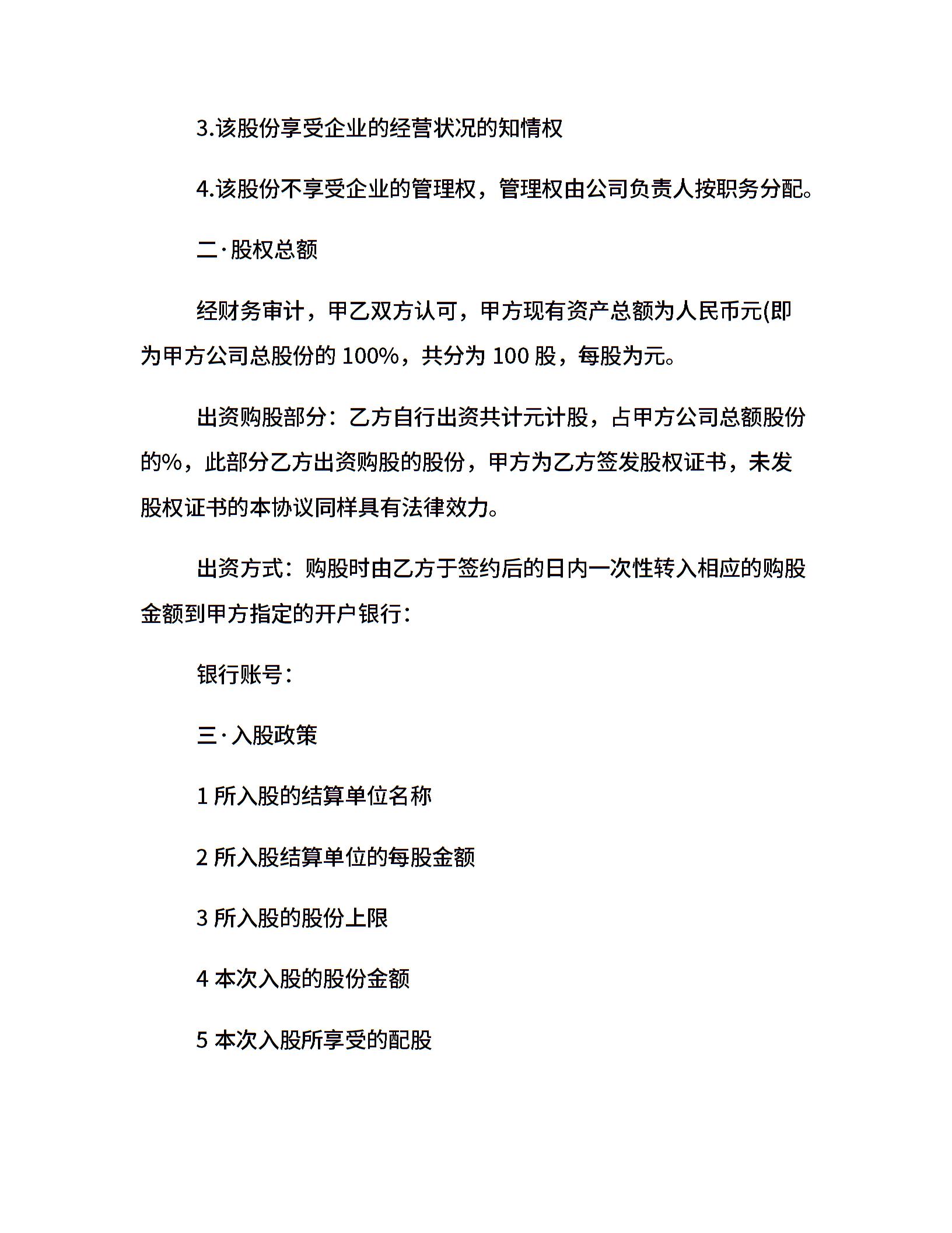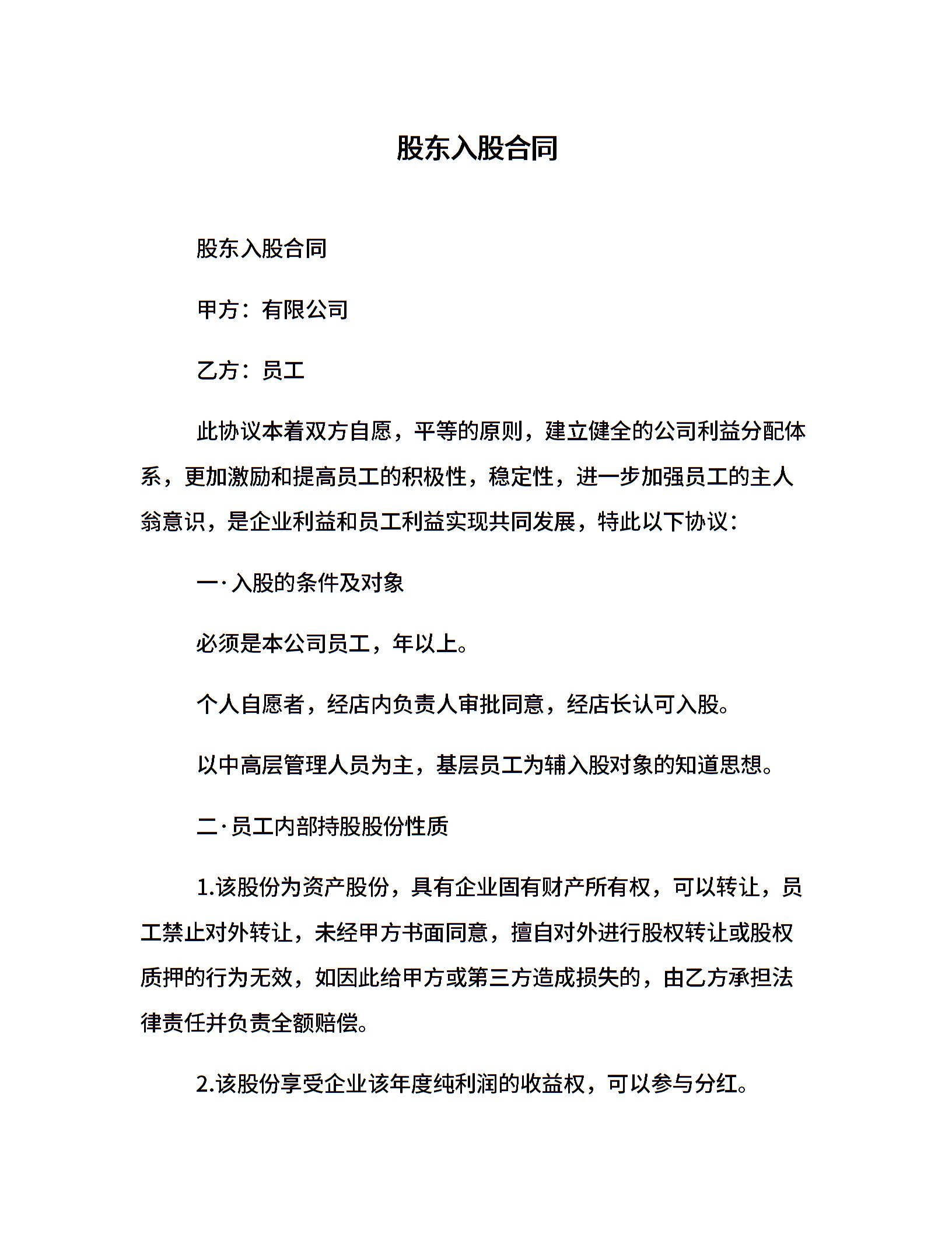 股东入股合同