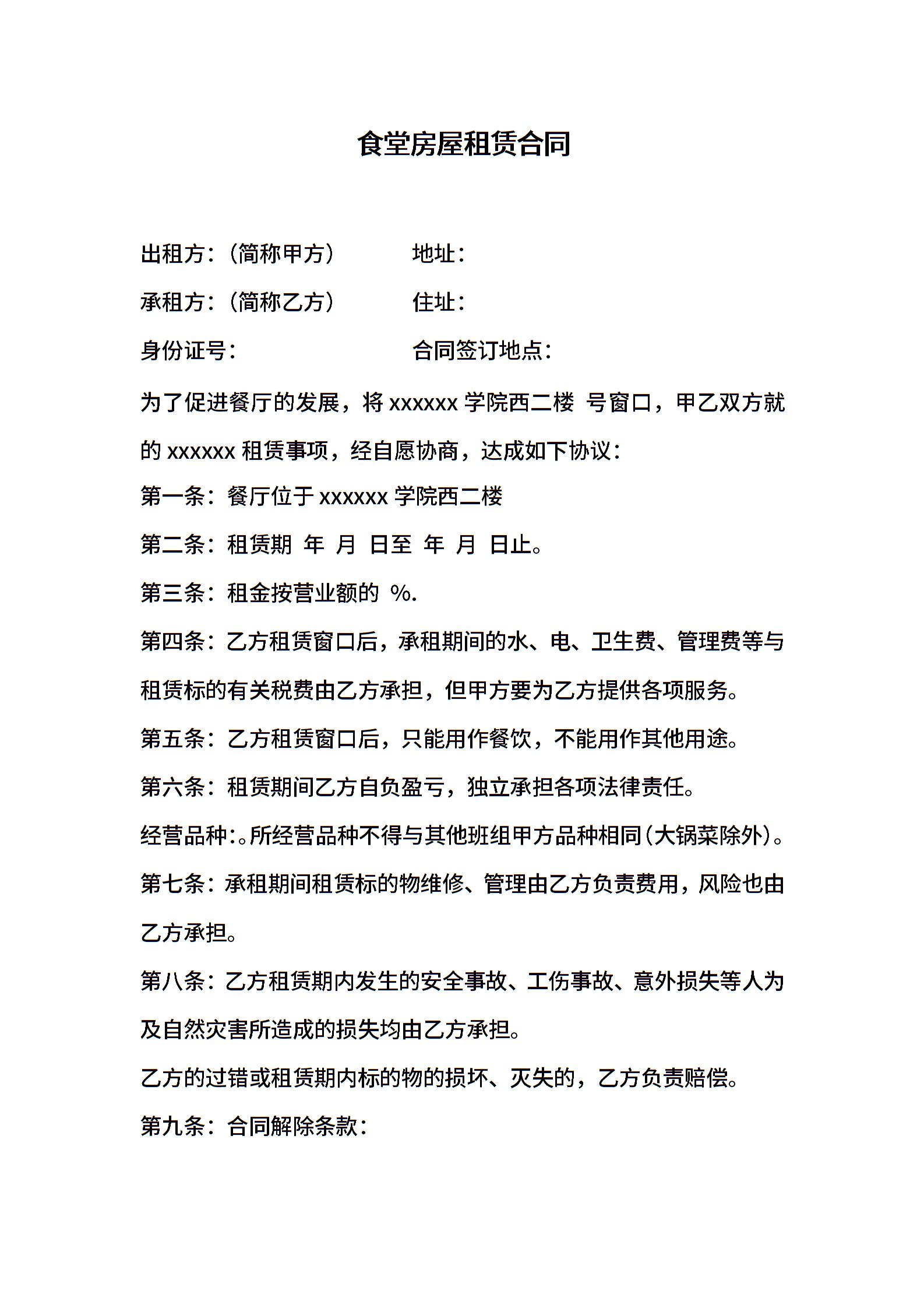 食堂房屋租赁合同