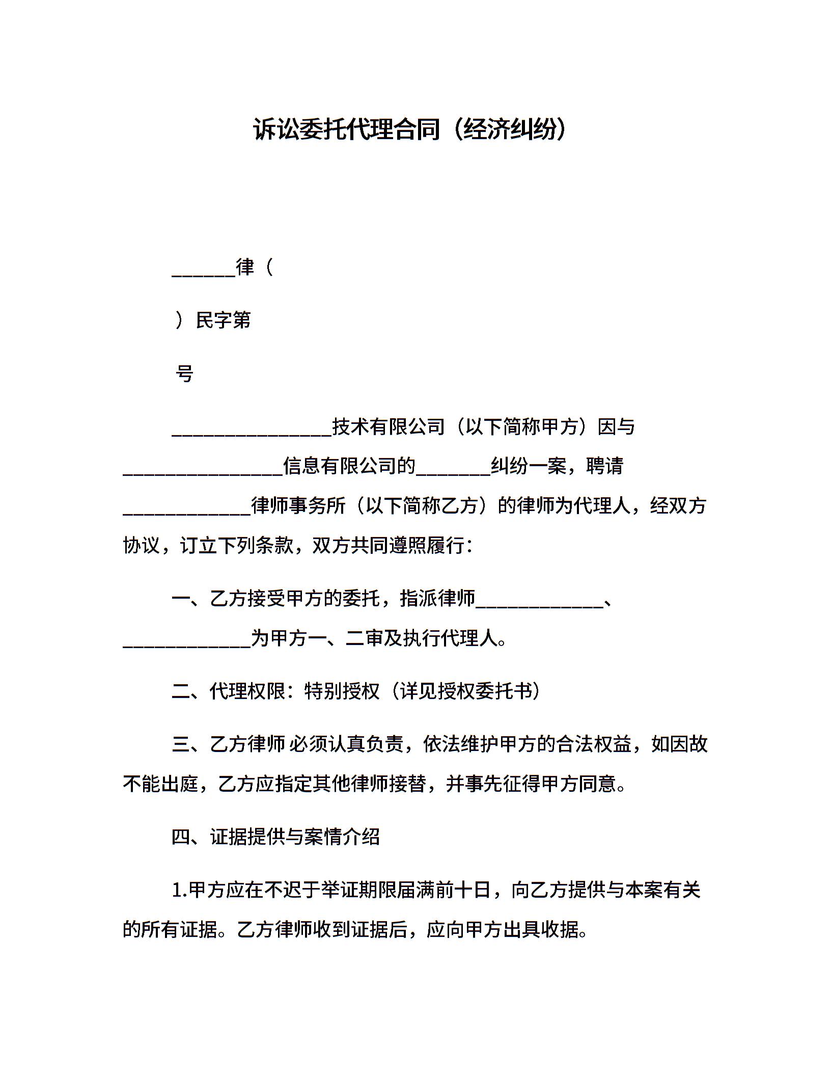 诉讼委托代理合同(经济纠纷)