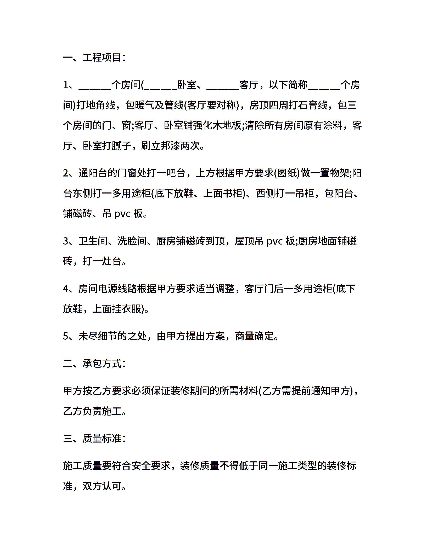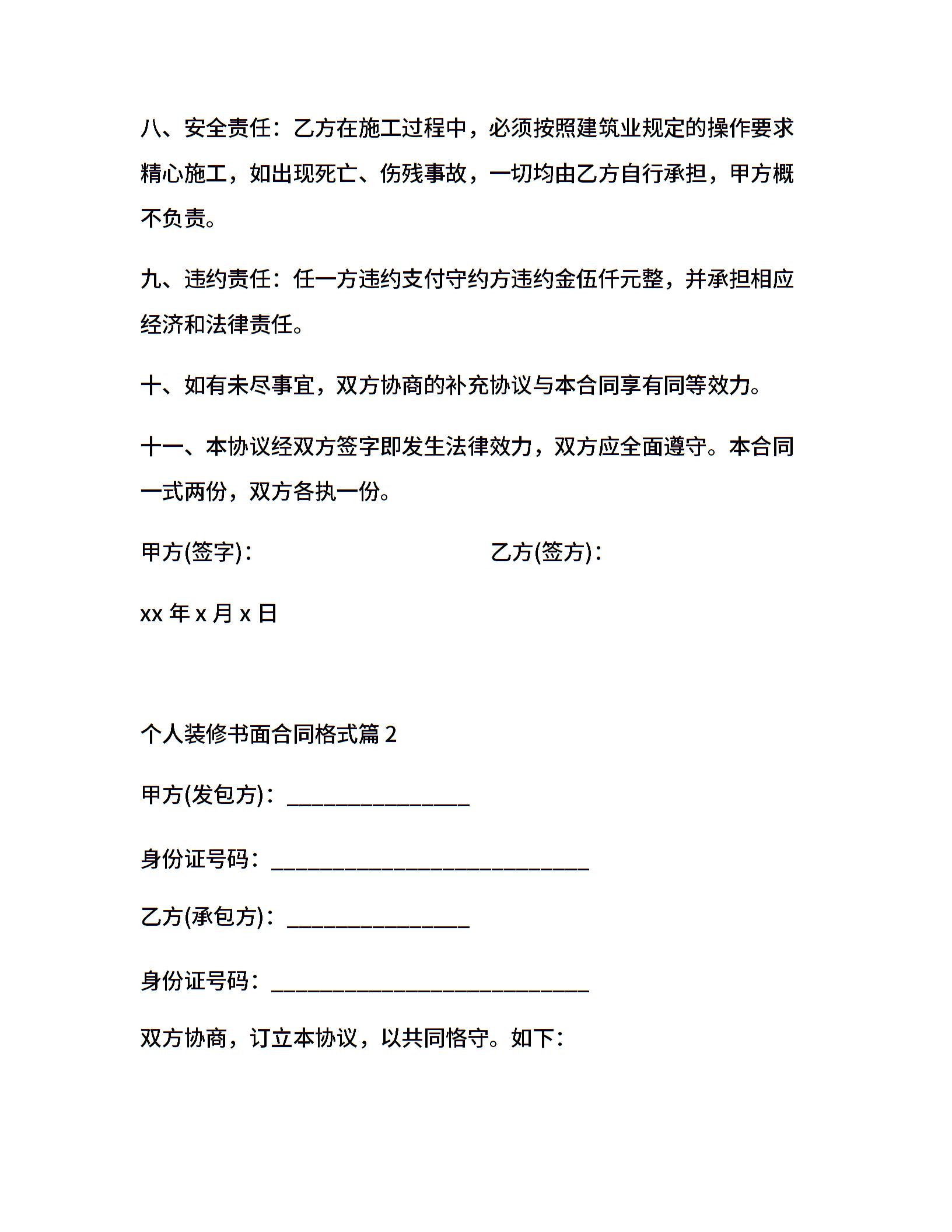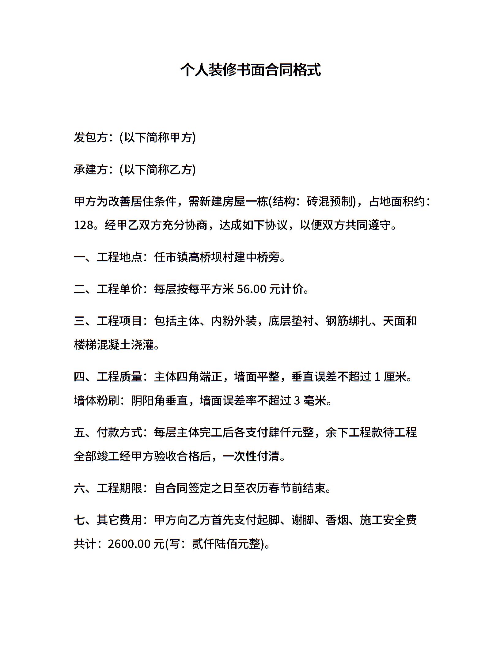 个人装修书面合同格式