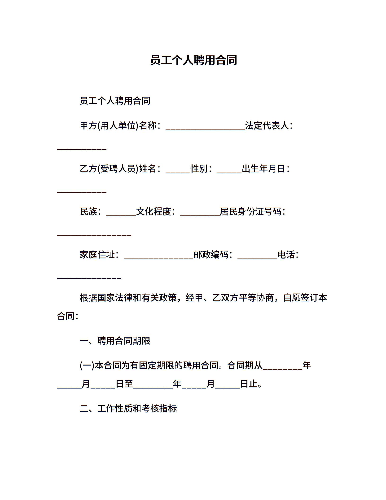 员工个人聘用合同