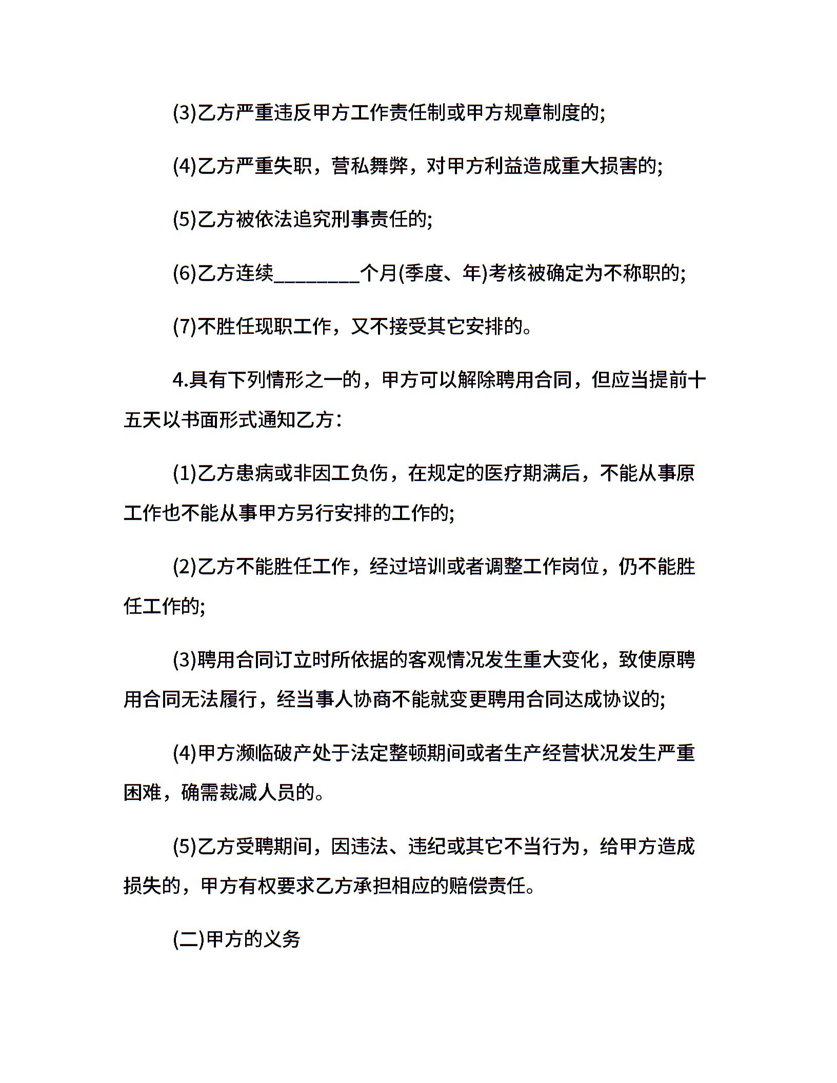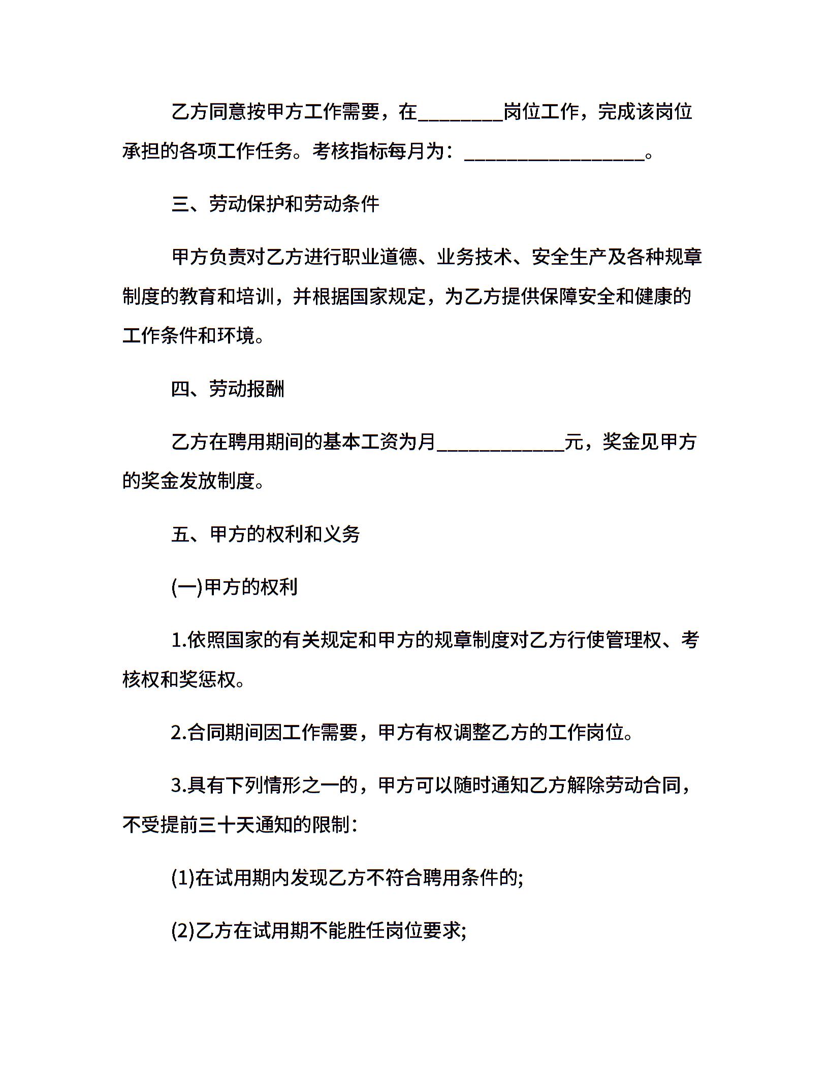 • 分类 聘用合同