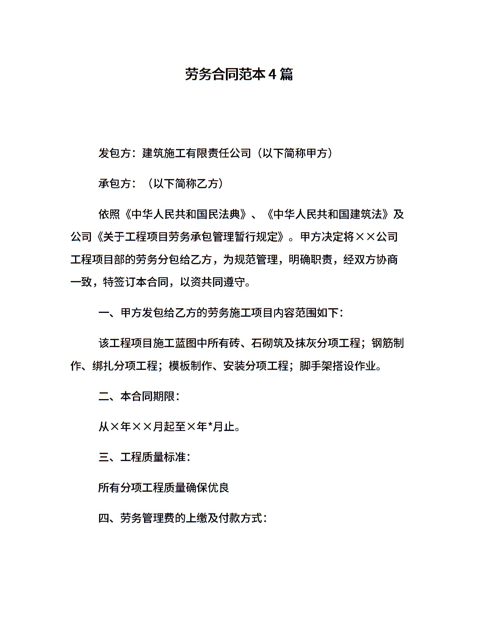 劳务合同范本4篇