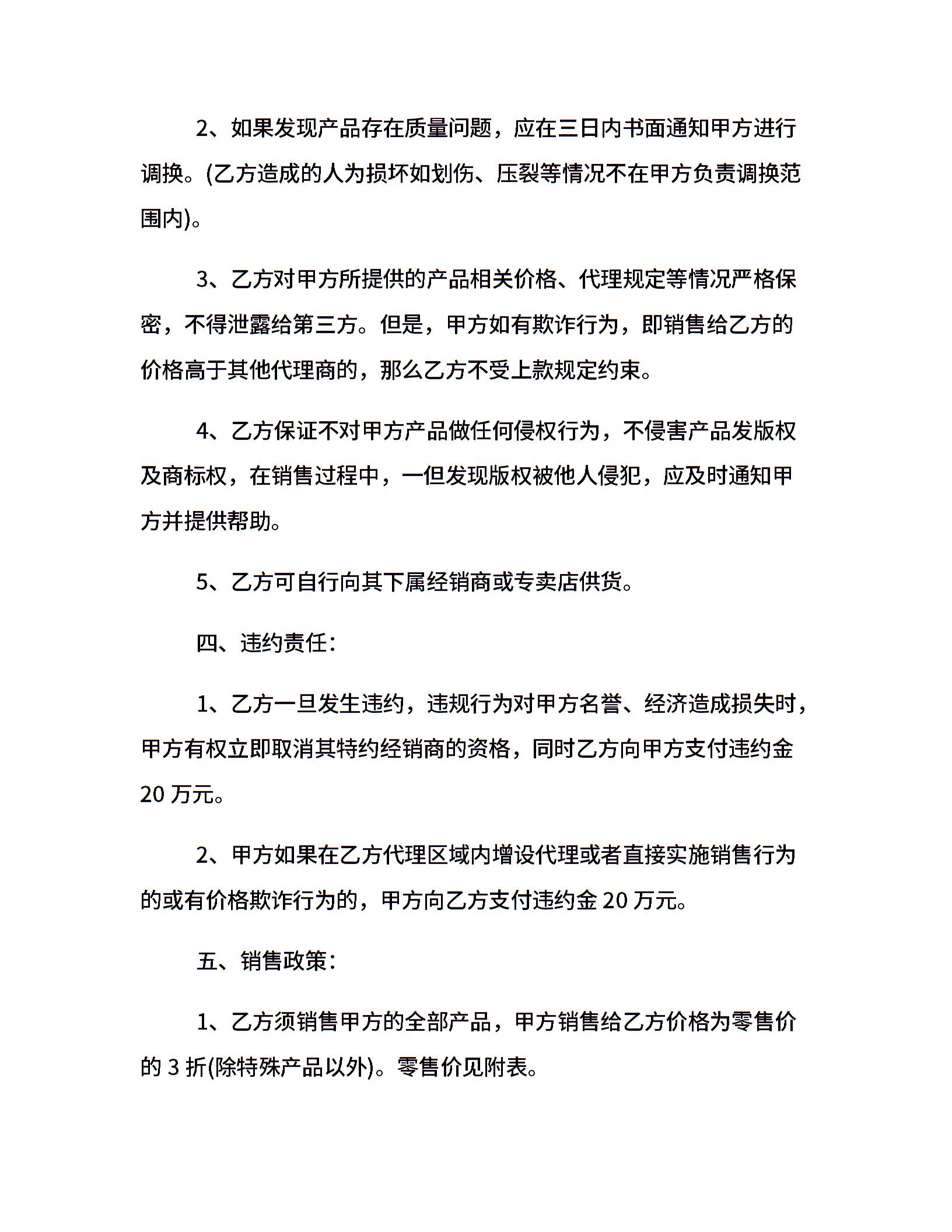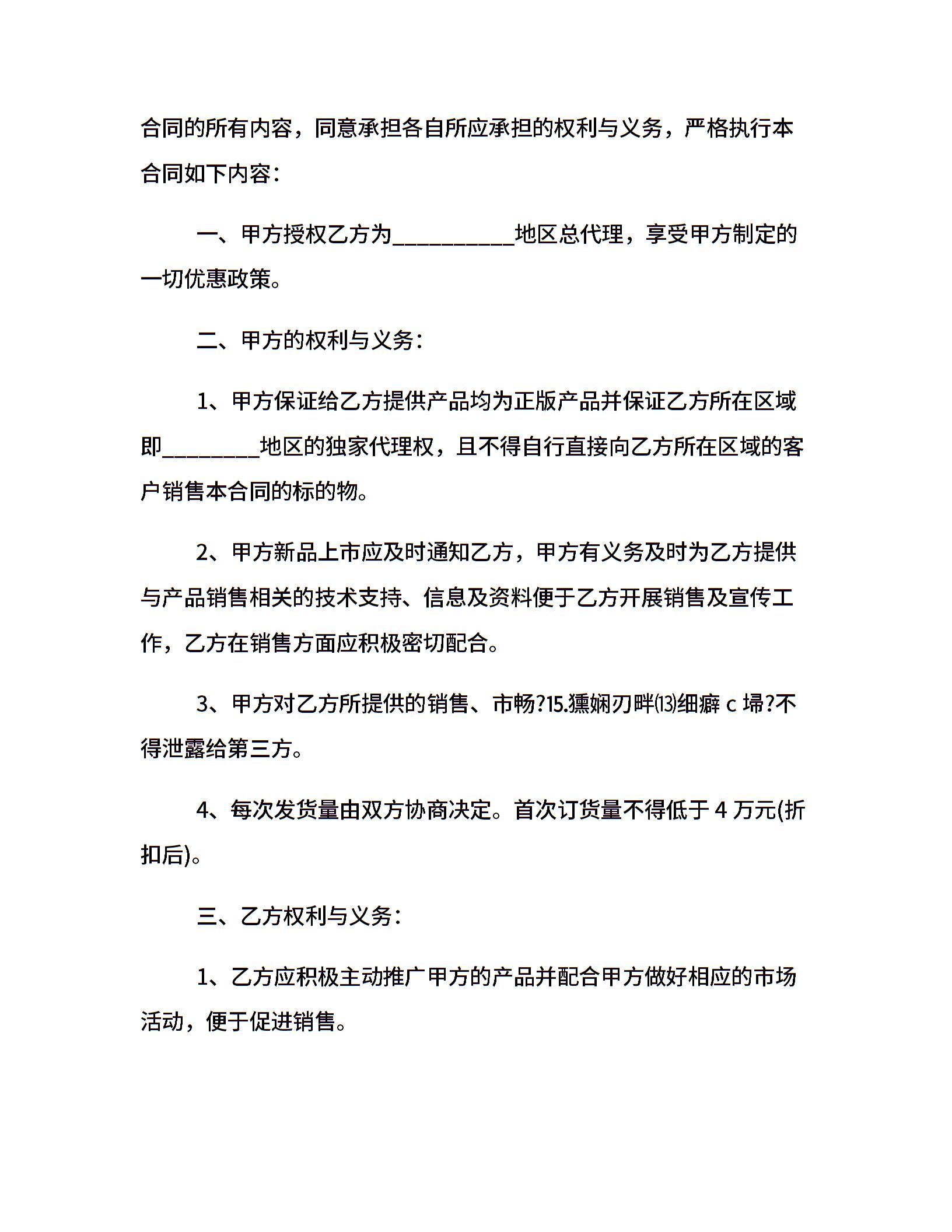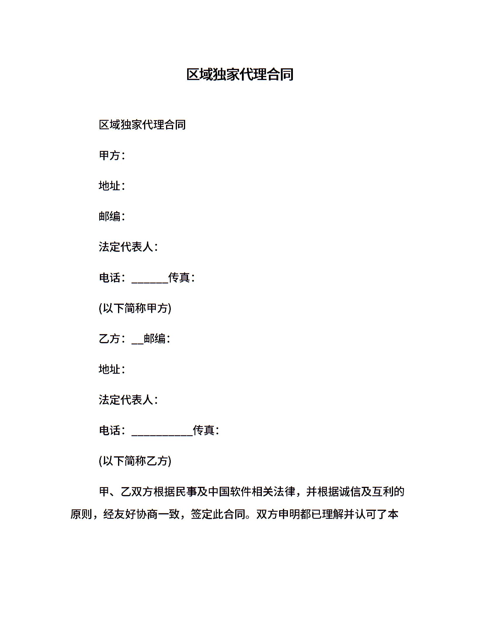 区域独家代理合同