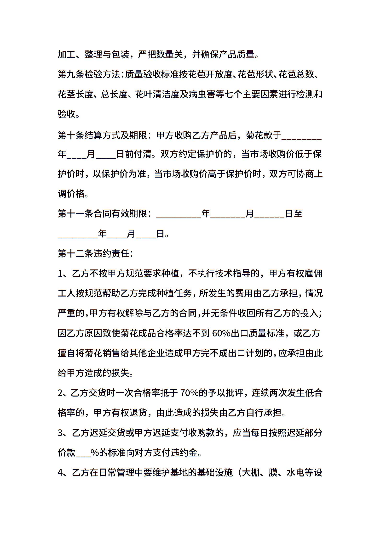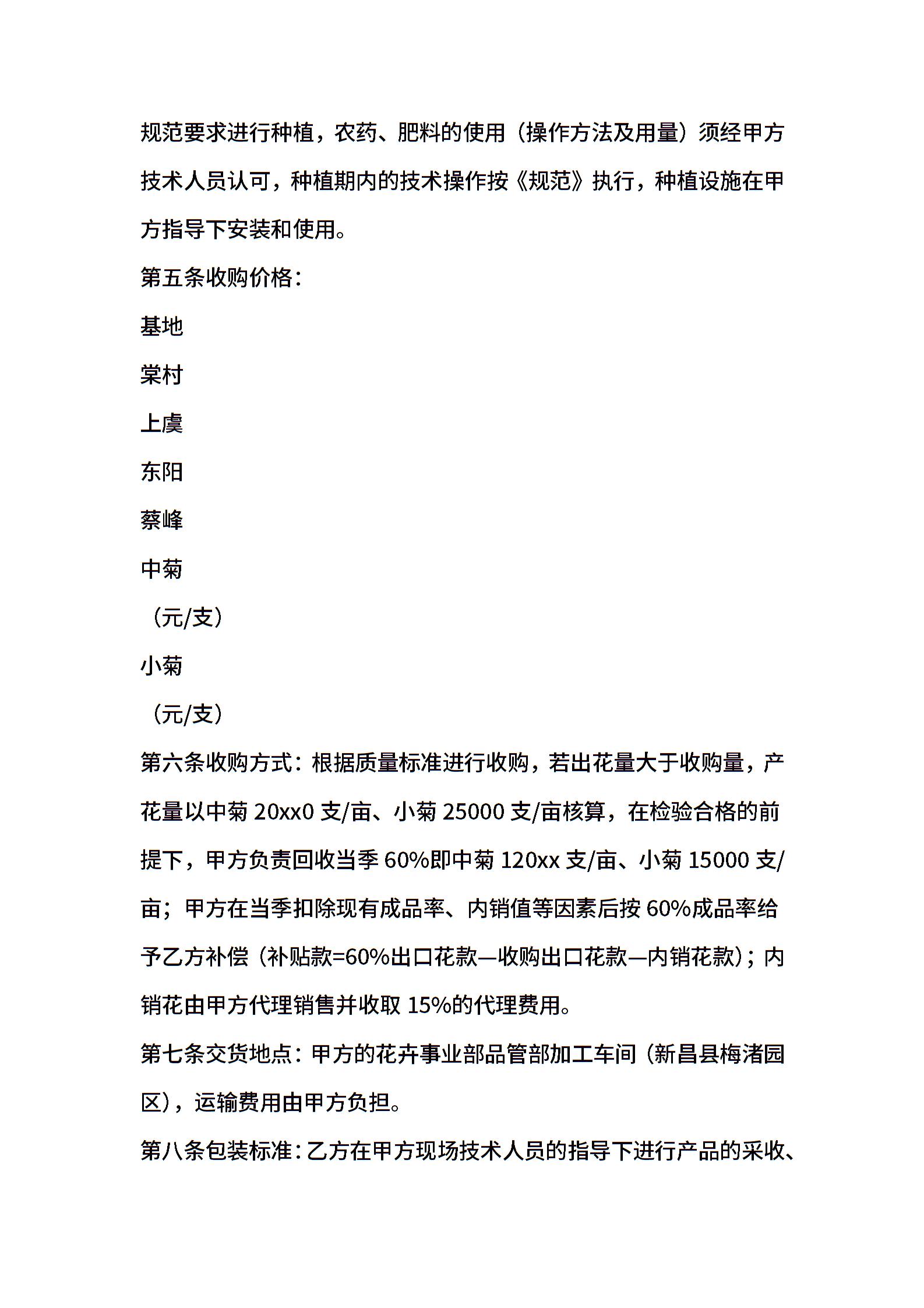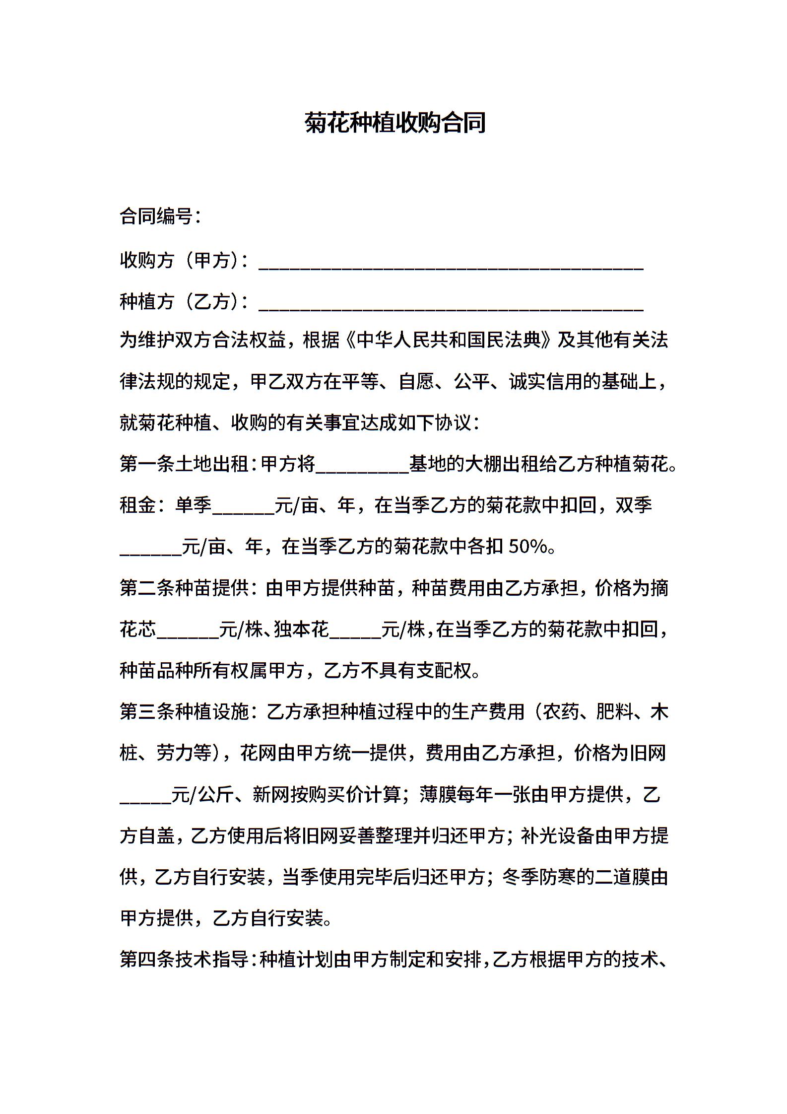 菊花种植收购合同